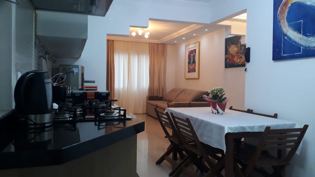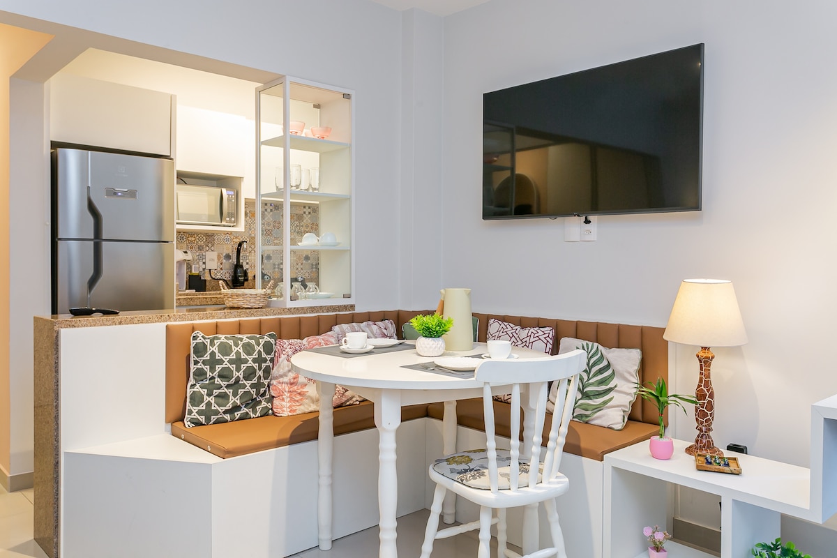 Looking for a cozy checkpoint in the heart of the city? You'll feel at home in this well-planned loft. Located in downtown Florianopolis, it's perfect for someone looking to explore the island or attend to an event nearby. Includes: - Queen bed - Complete gourmet kitchen - Washer and drier - Big table for meals and Home Office - 360 Rotational TV so you can watch from anywhere in the loft - Clean and modern bathroom - Wi-fi - Complete air conditioning
