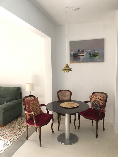 Charming one bedroom boutique apartment (3 beds) with private access to a large sunny rooftop terrace. There is one bedroom with two twin beds (that can be put together to make a king size double bed)and a separate double bed. The apartment has one complete bathroom. Fully air-conditioned with heating in winter and comes with wi-fi internet. Free wifi, fully equipped kitchen, iron, board, hairdryer, amenities, towels, sheets..... Extra cleaning is also available. License, HUTB 004320