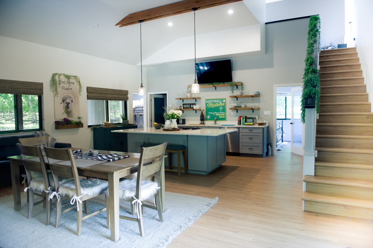 A very magical place we call home. Nestled in the middle of 20 acres of established walnut trees, lies your new favorite getaway! You can simply sit back and chill in the beautiful Orchard House or come outside and enjoy the patio/pool/barbecue/ fire pit and spa. One of the bedrooms listed is upstairs in a gaming tower, filled with entertainment options!! Also if you love animals as much as we do, you can help feed our furry and feathered friends .Either way....Prepare to fall in love!