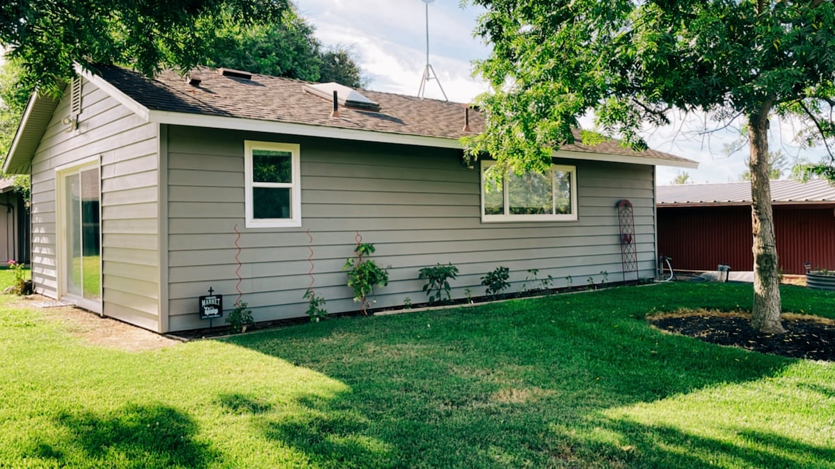 Our little guesthouse is located in the Central valley. It is nestled in an almond orchard on our family farm. Only a 1/2 mile from Highway 99 it has easy access to many of California’s beautiful sights. This home includes a cozy living room, two bedrooms (with a queen bed and a full bed) and a minimally stocked kitchen. It does include a Keurig. Only five minutes away are plenty of choices of fast food restaurants and grocery stores. There is also laundry soap available for washing clothes.