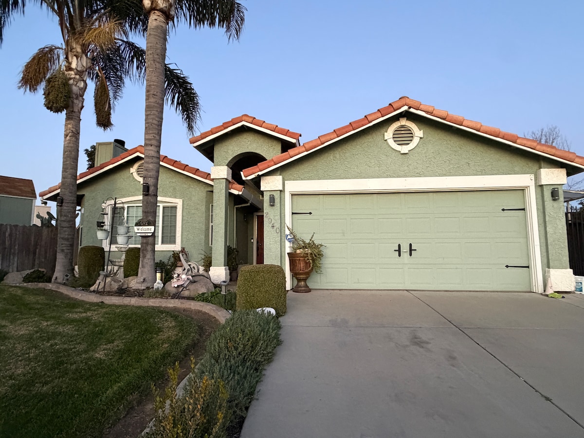 Enjoy this calm, stylish space. Centrally located in the heart of California, you are just about two hours from everything: Yosemite, Monterey/Santa Cruz beaches, Silicon Valley, San Francisco, Great America, Marine World, Sacramento. Also, within ten minutes is UC Merced and Mercy Hospital, along with quaint downtown Merced, and plenty of wine country nearby. It's only one hour to Fresno, Modesto, or Gold Country. This beautiful home has everything a you might need for a pleasant stay.