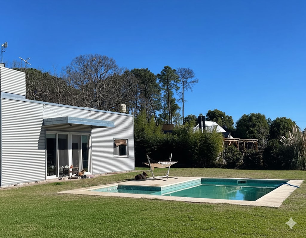 Lugares de interés: Hermosa casa con pileta y parque de 2500m. Cuenta con un bosque privado, parrilla, cochera y una casita para niños. El ambiente principal muy amplio, con cocina integrada, living y comedor. Direct TV, salamandra y un confortable sillón. Dormitorio matrimonial y baño completo. Para alquileres menores a una semana no estamos incluyendo blanquería Ideal para familias con niños, parejas o amigos. Alquiler mínimo todo el año dos noches
