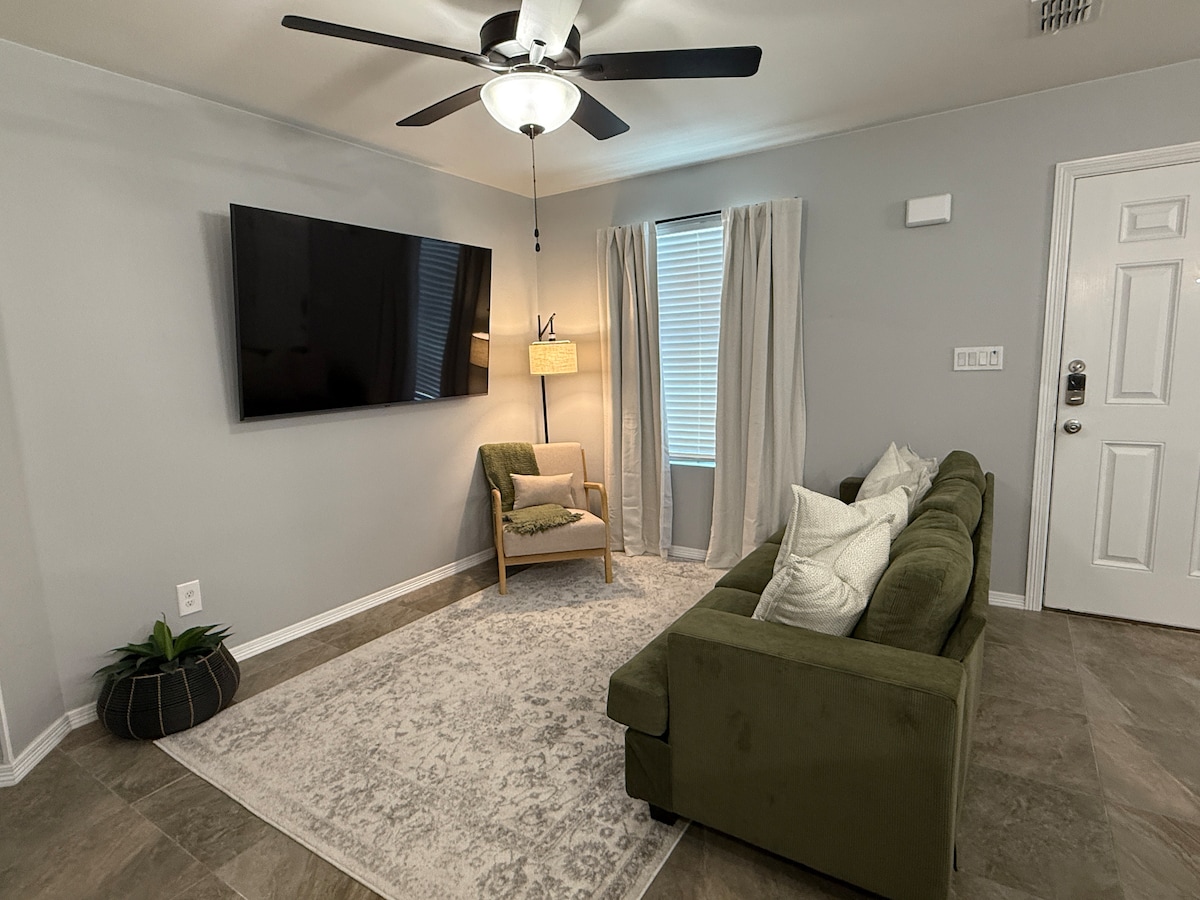 Doble S Apartments at UTRGV, Apt #6. Great location in the heart of Edinburg - .5 miles from UTRGV, 4 miles for DHR, 1.5 miles for the Hidalgo County Courthouse. You’ll feel at home & relaxed in our newly remodeled space w/2 cozy queen size beds, smart TVs, comfortable living & dining area & a full kitchenette with all the essentials! Free WiFi, parking & access to laundry area for our guests. Security cameras are recording the perimeter of the building, parking lot & laundry area 24/7.