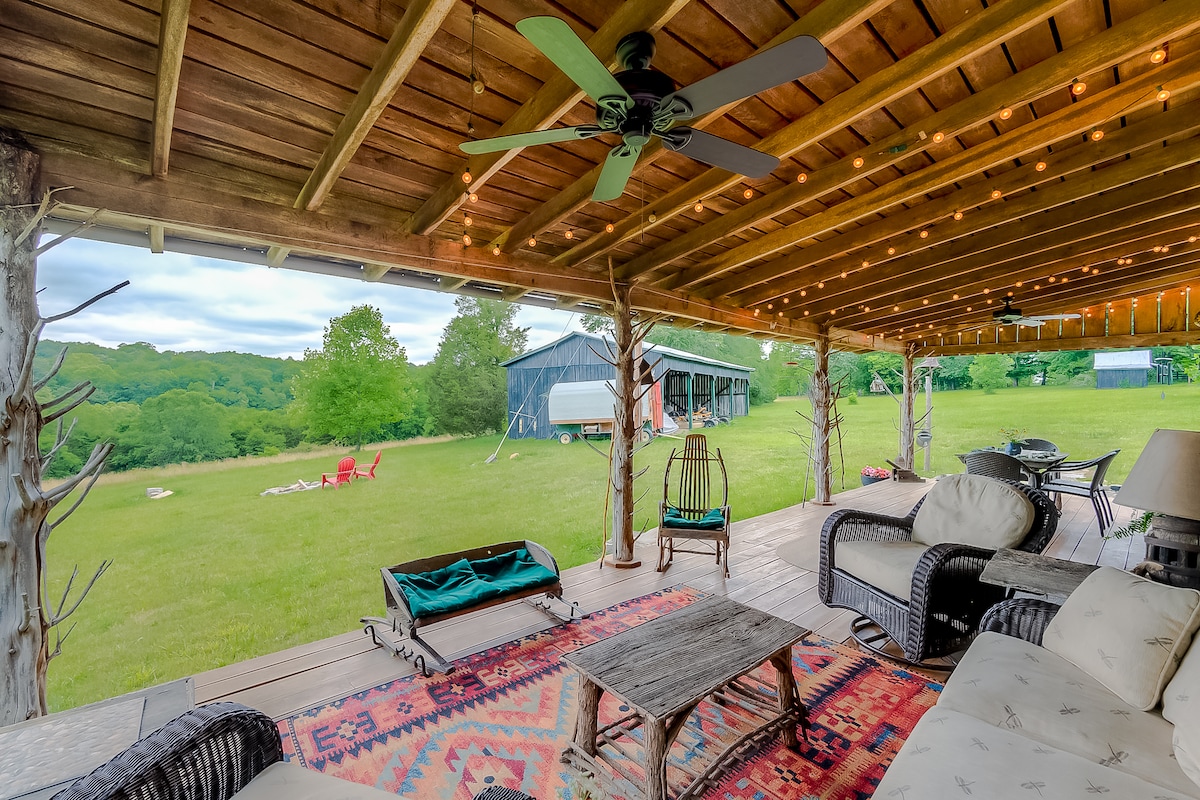 10英亩农场上的宁静蓝草度假屋!