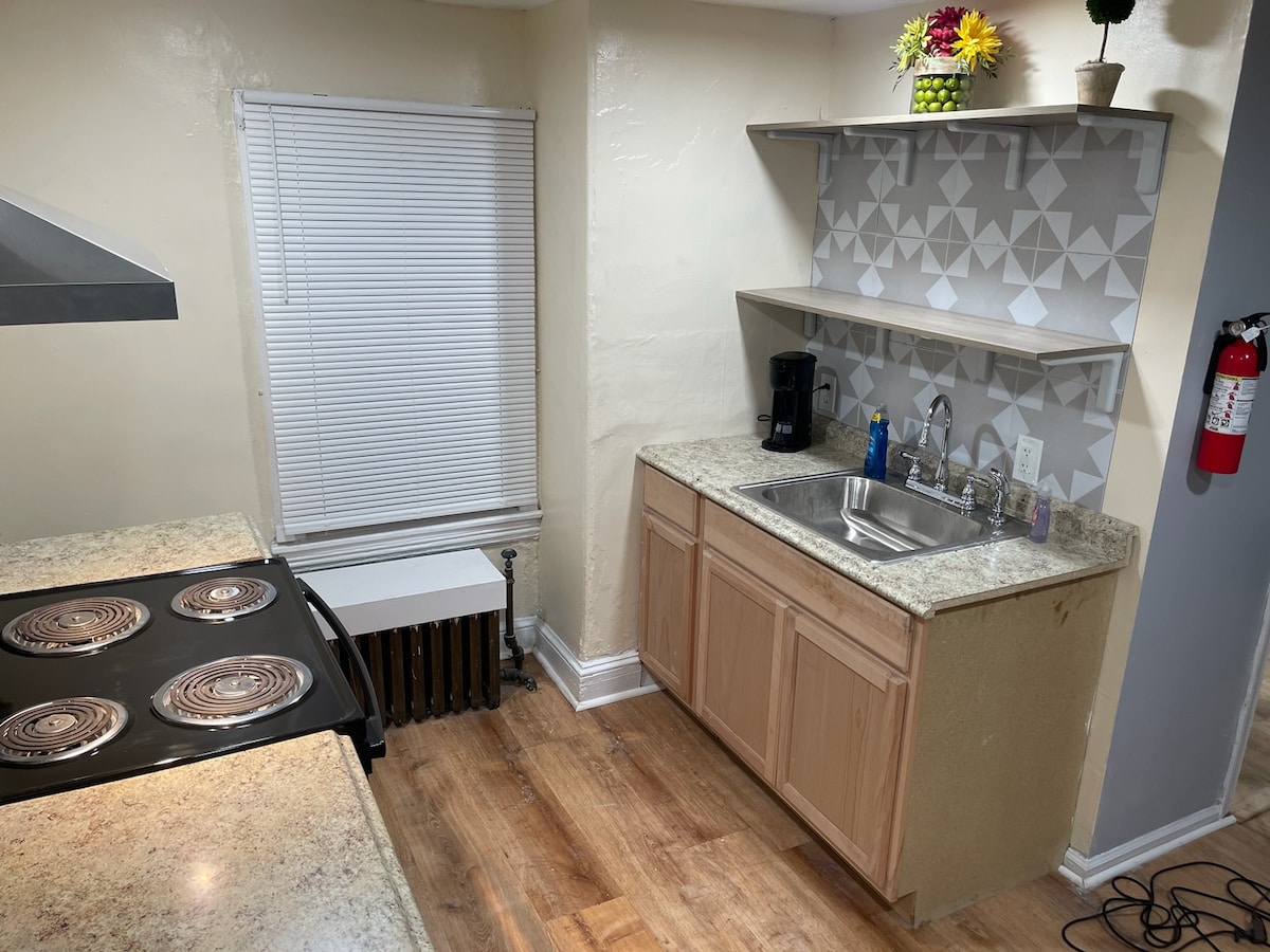 Enjoy a stylish experience at this centrally-located apartment in the heart of downtown Trenton. This modern, recently renovated 2nd floor apartment is perfect for small families or business travelers. The apartment accommodates up to 4 guests and includes the following key amenities: Self Check-in Designated free parking space 2 Smart TVs Wi-Fi Private washer/dryer Queen master bed Queen sleeper sofa Fully equipped kitchen Coffee bar w/free tea and coffee Clean linen/towels Central air/heat