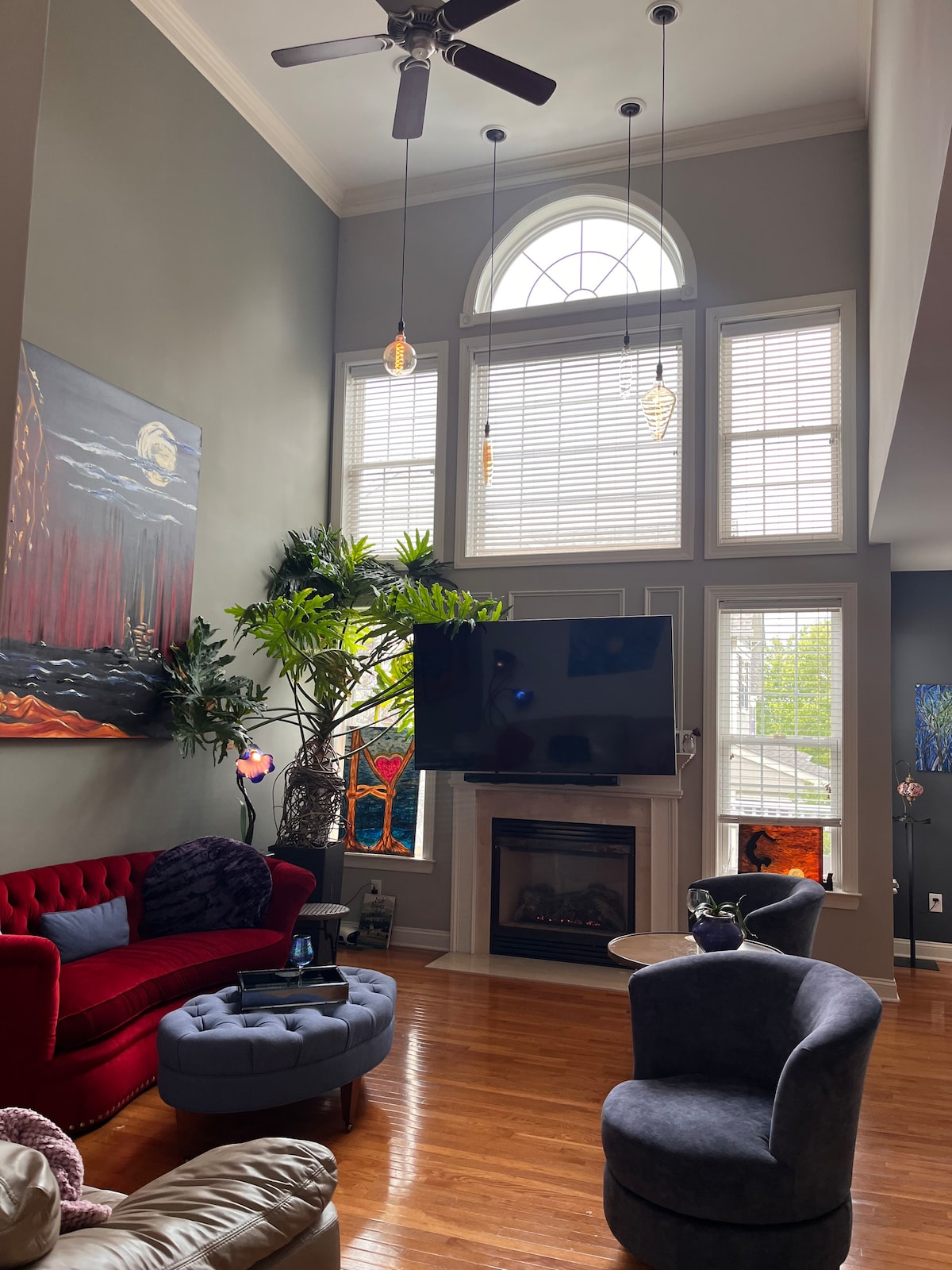 Welcome to our serene retreat perched on a cliff, nestled within a lush mini forest and bordered by a tranquil creek. Just a short 8-minute stroll to downtown Lambertville and short walk to canal, river and hiking trails, our uniquely decorated 3-bedroom, 2.5-bathroom oasis boasts a living plant wall, original artwork, and a cozy wood fireplace. Relax on one of two decks, surrounded by the tree tops, and unwind in this truly special space.