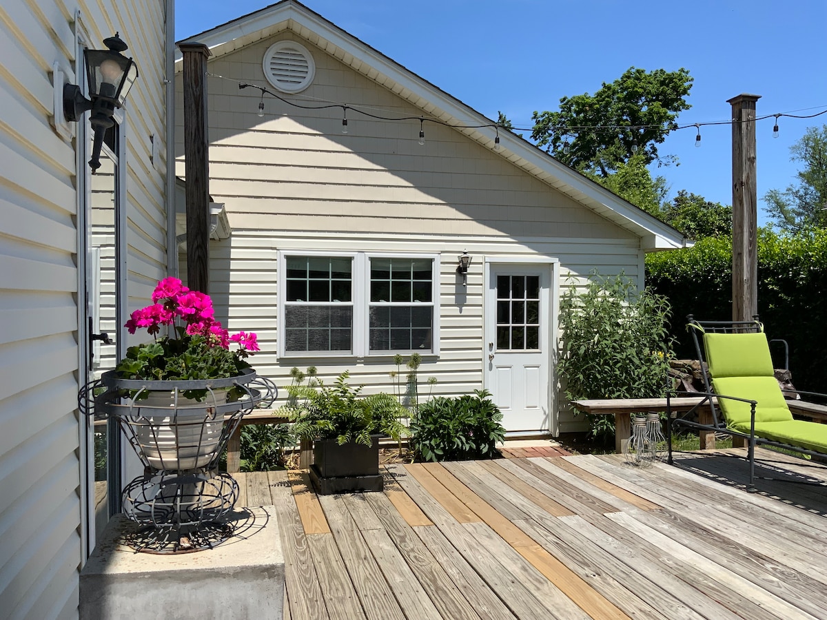 Whether you’re traveling for business or pleasure, this lovely guesthouse provides everything needed for your stay. The bedroom is comfortable, quiet, and completely private, ten steps from the main house with its own entrance. The main house provides access to the guest bathroom with shower/full bath and all essential amenities. Between the guest bedroom and main house is outdoors and features a secluded deck you are also welcome to enjoy.