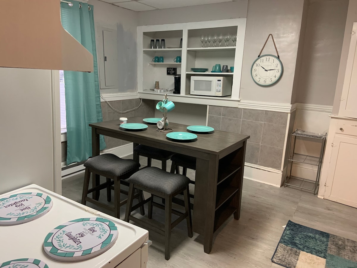 Cozy 1 Bedroom fully furnished apartment with own entrance that is in the basement of our beautiful Historic Home in Bluefield West Virginia. Amenities include wifi, washer/dryer, fully stocked kitchen, snacks, drinks, coffee and tea provided Large dining area and spacious kitchen. Queen size pillow top bed with 1200 thread count ultra comfy sheets and pillows. Large L shaped sectional and big screen tv. Dogs allowed (NO CATS) with a $25 per dog cleaning fee. No dogs larger than 60lbs