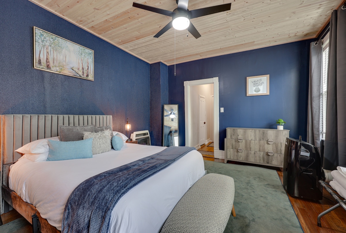 Relax and unwind in this cozy, centrally located studio. Perfect for travelers, the space features a comfortable double bed, work desk, cozy reading chair, and TV for your downtime. The kitchenette area includes a microwave & mini fridge with ample coffee & tea supplies, while the bright bathroom offers plenty of natural light. All the essentials you need for a comfortable stay. **Checkout on a Monday for more options at a discounted Sunday rate.
