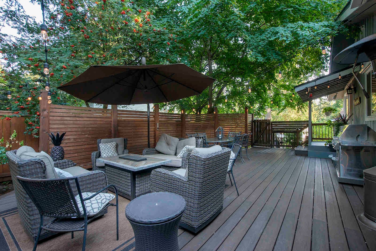 With over 2,800 square feet of space, this zen mid-century home is located in highly sought after Mercer Island. After all, you're within walking distance of parks, grocery stores, and shops! The home is equipped with a chef's kitchen, two living rooms and activity areas, and plenty of outdoor space to enjoy the fresh PNW air! - Fully equipped kitchen - Two living rooms and two dining rooms - Yoga/exercise room - Laundry room - Wrap-around deck and fully fenced-in backyard