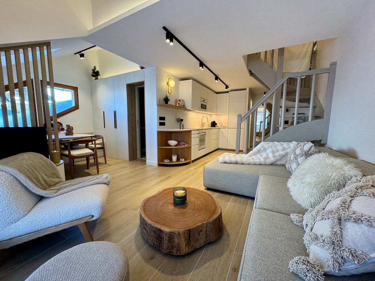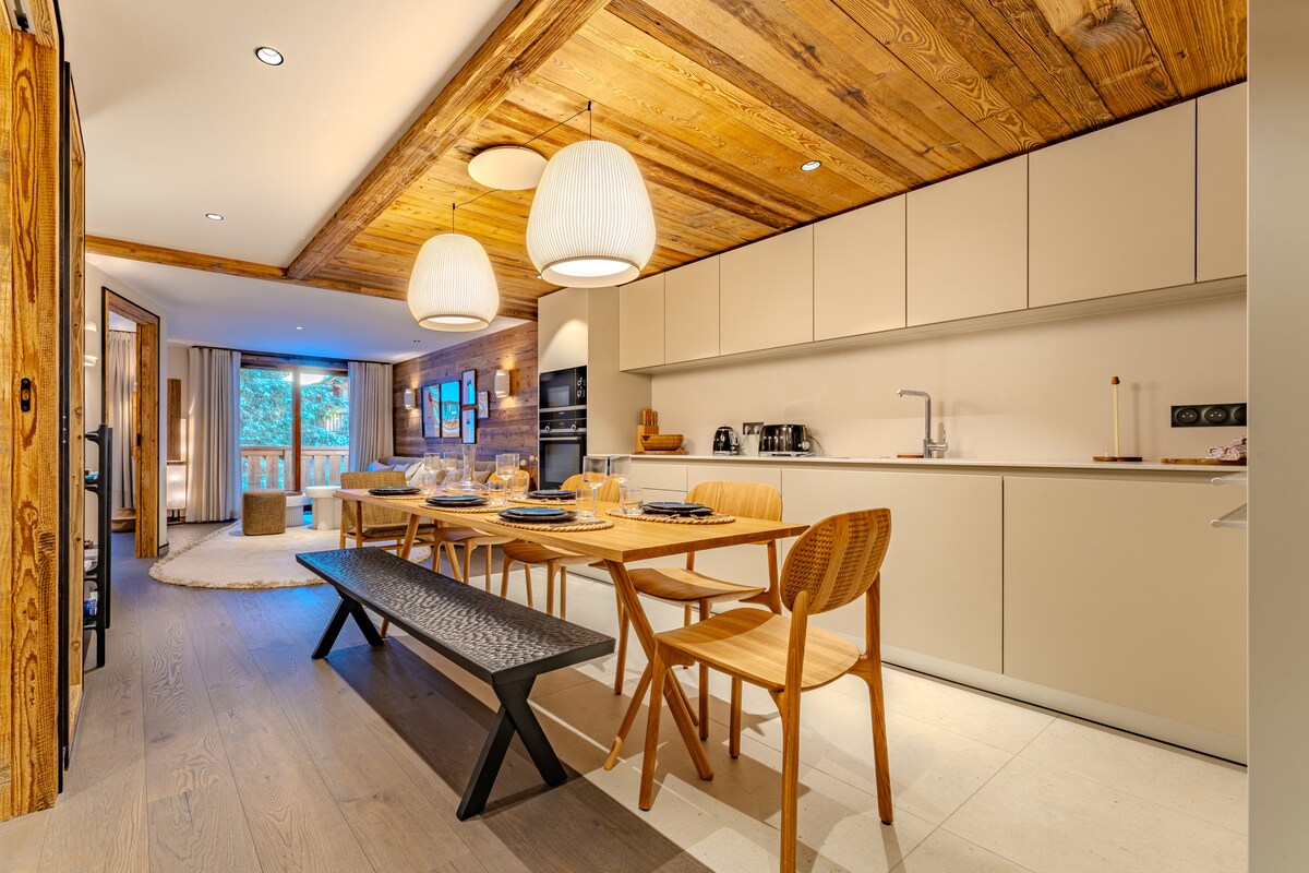 Appartement classé 3*** et "Label Méribel". Excellent emplacement et très belle exposition à 50m des pistes (Plateau Rond-Point). Proche des commerces, cet appartement T2 entièrement rénové comprend une cuisine équipée (lave-vaisselle, micro-ondes grill, Nespresso, plaques induction…), coin repas, canapé lit dans le salon. Il dispose d’une chambre avec lit double et salle de douche (lave linge). La décoration raffinée vous séduira. Large balcon accessible depuis salon et chambre. Parking.