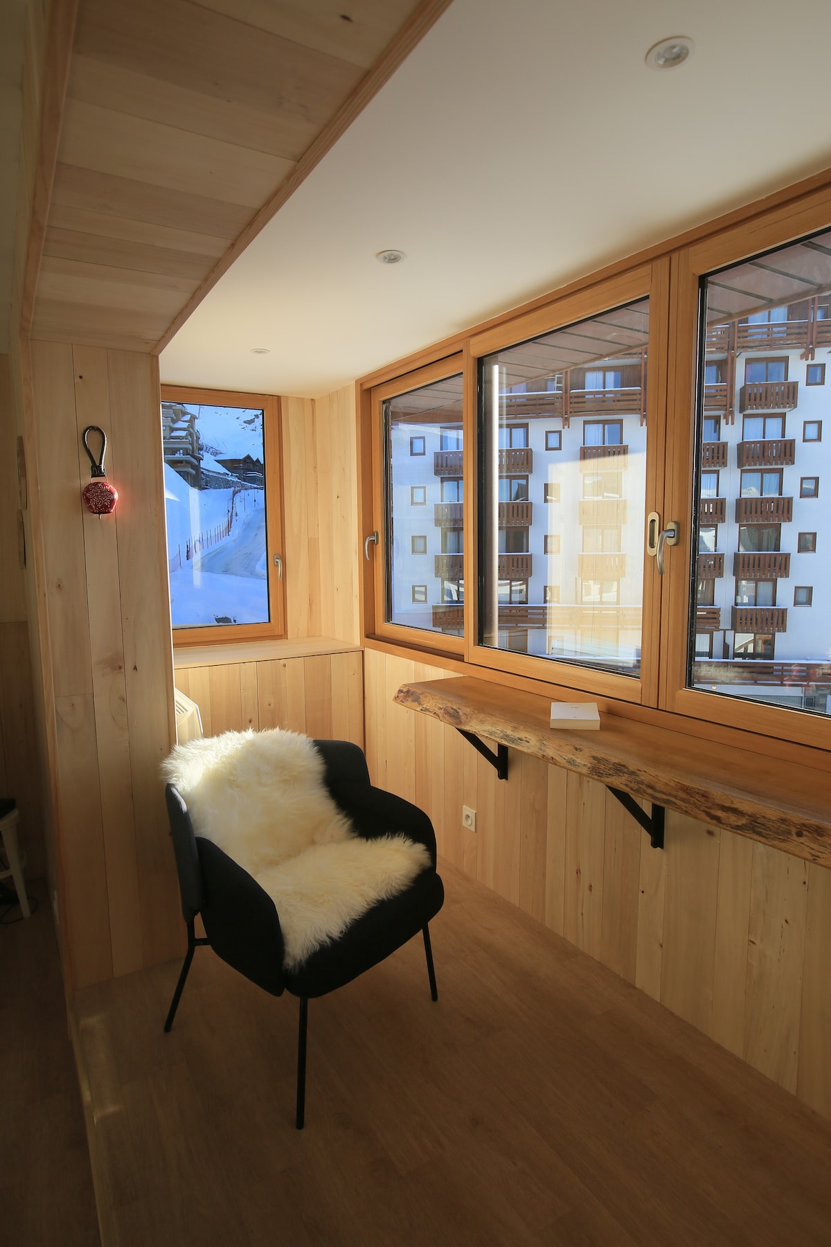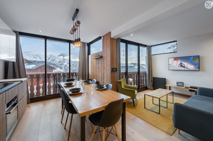 Luxurious 25 m2 studio fully renovated in 2022 (4 guests) is ideally located in the center of the station of Val Thorens ; just at a few meters of all shops, ski schools and rental centers. The residence is located on the main street; however the studio, at the 3rd floor, is oriented to the mountains and so is protected from the noise of the street by triple glazed windows. • REAL Ski in Ski out • Household linen included. The beds are made for your arrival • WIFI • Disney+ , Eng ch. • Ski box