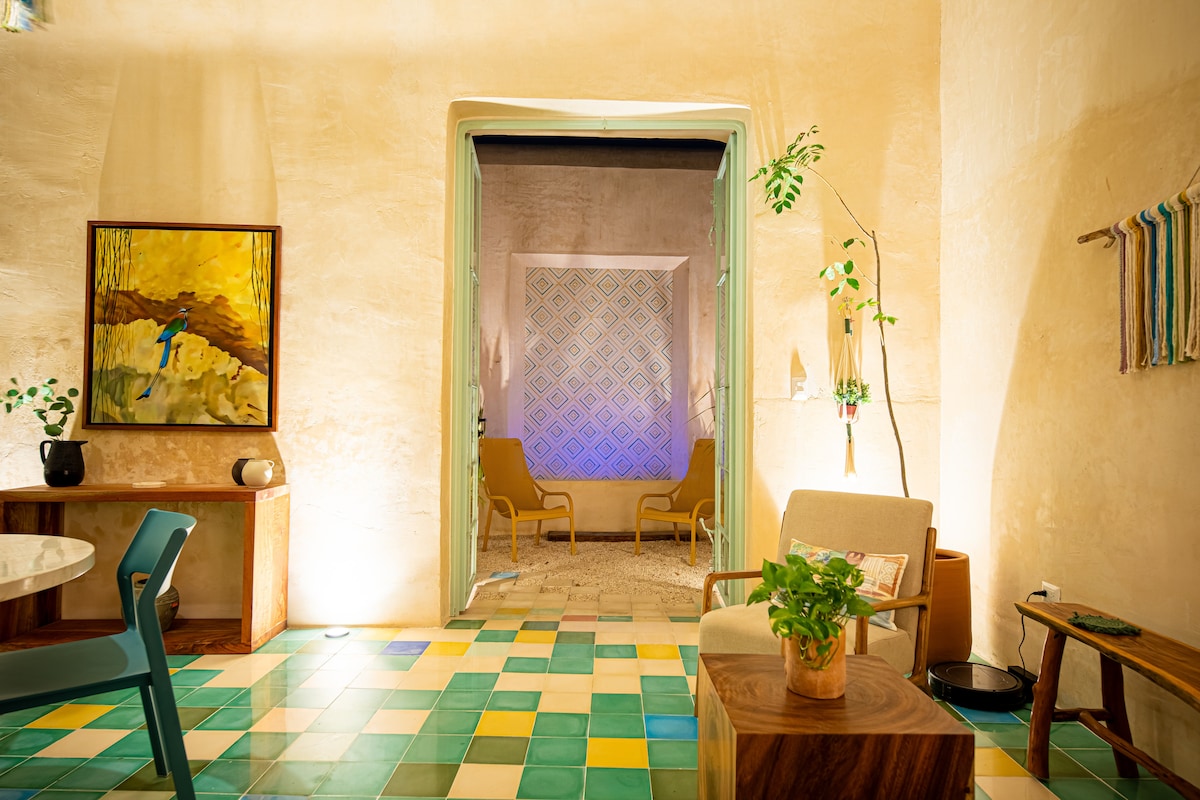 Casa Opium is a beautiful, eclectic and colorful house, which mixes the typical architecture of the Historic Center of Merida, with architectural and decorative details of Arab influence in the form of several Moroccan monumental arches, as well as a well-ventilated central courtyard. The house is decorated with lamps, cushions, paintings, books, curtains and a soft light that recreates a Moroccan mini palace, in the middle of the White City of Merida, Yucatan.