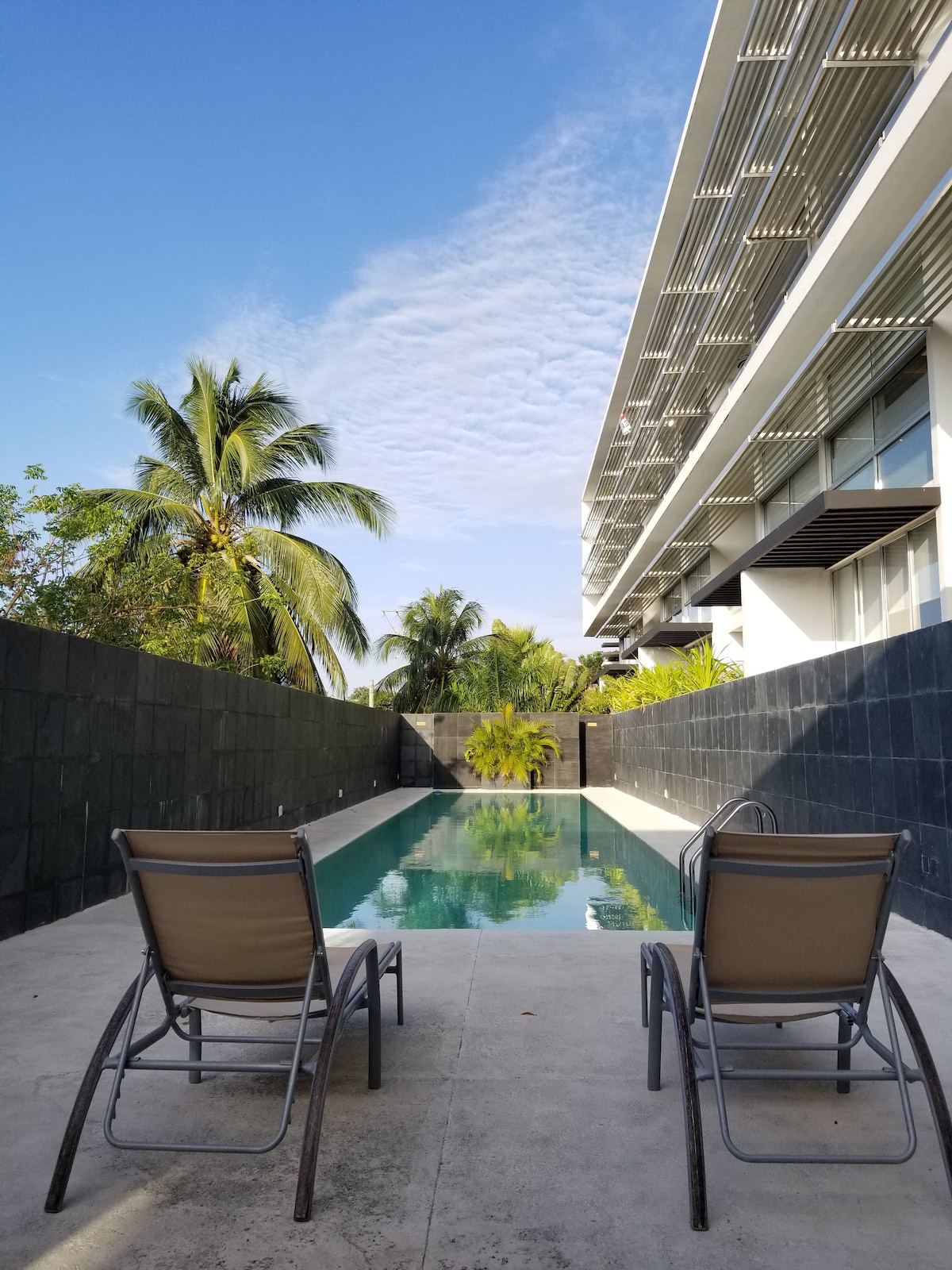 Disfruta de este cómodo y moderno espacio en dónde podrá descansar y cocinar sus alimentos en la cocina equipada . Televisión por cable,aire acondicionado, ventilador de techo ,hamaca. Podrá refrescarse en la Alberca de uso común ,camastros y mesas al aire libre.