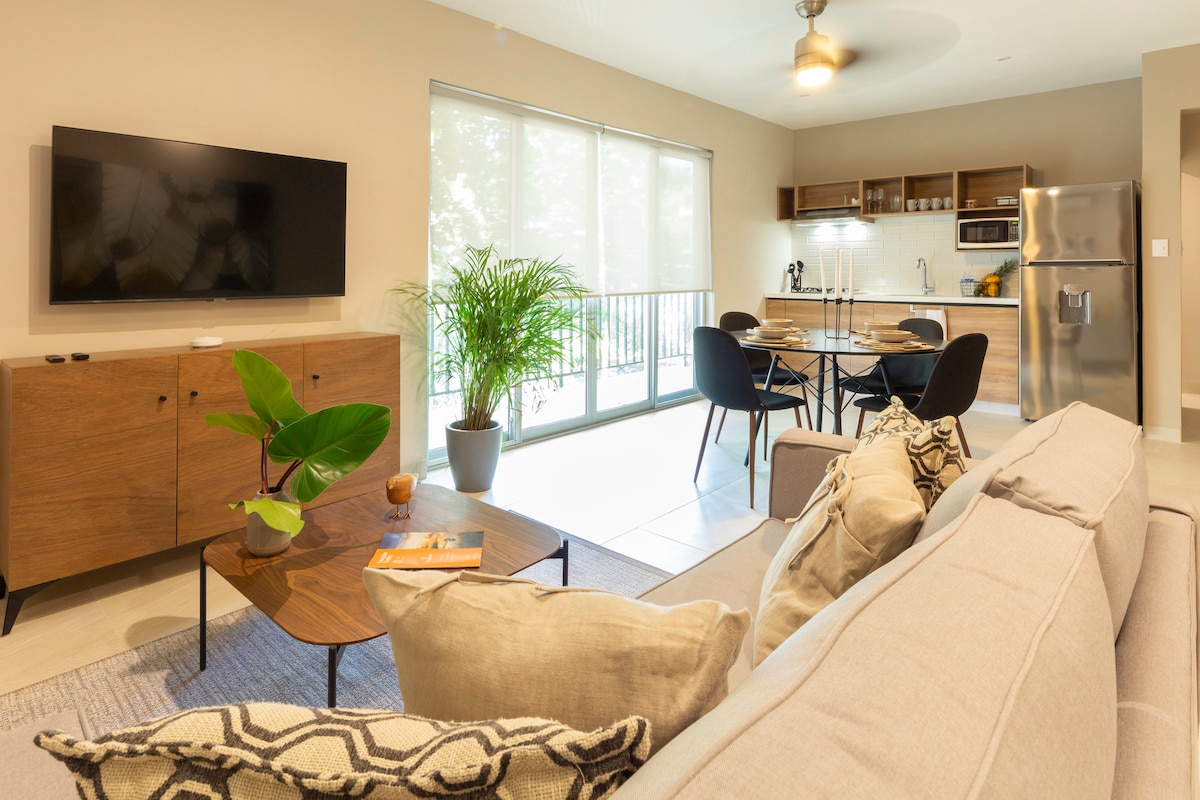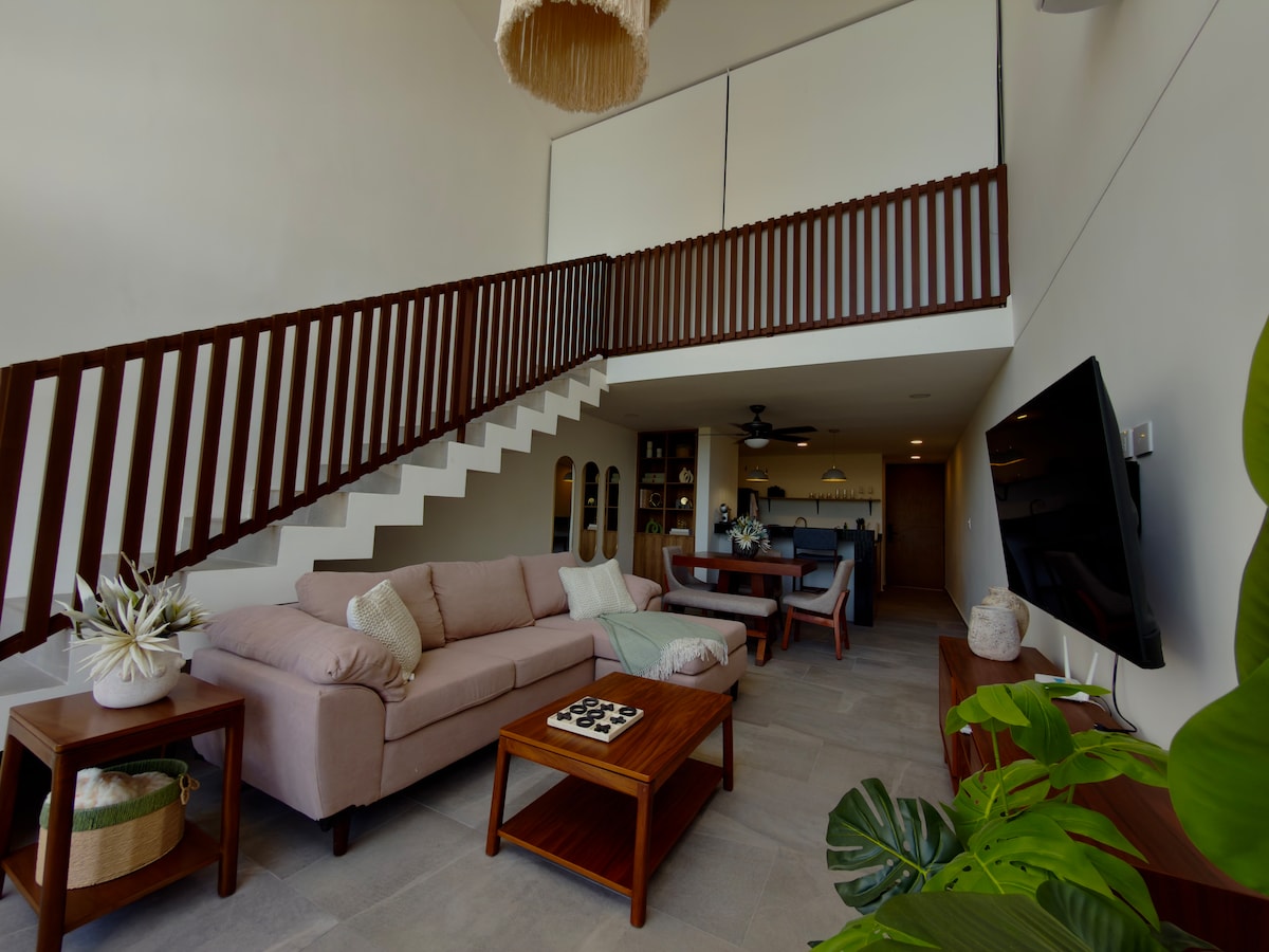 Discover our modern smart one-bedroom apartment, ideal for 2 guests and up to 4. It features a fully equipped kitchen, 1.5 bathrooms, living and dining area. Just say “OK Google” to control the TVs, fan, air conditioning and music. Located in Bosqüa, a private complex near downtown Mérida with easy access to Puerto Progreso. Perfect for remote work. Self check-in from 3 pm and 24/7 security for your peace of mind.