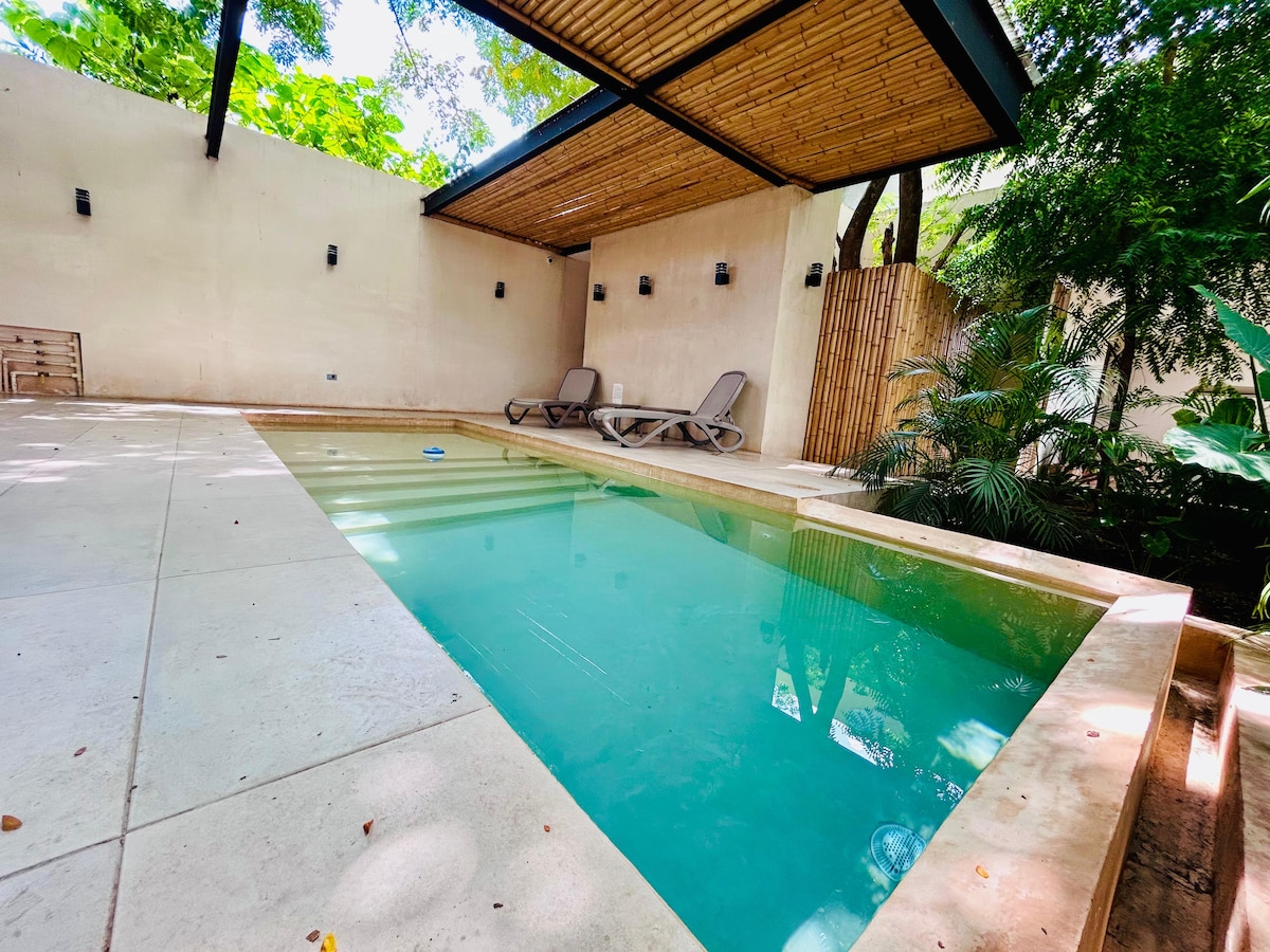 Bienvenido a tu refugio en Temozón Norte, una de las zonas de mayor crecimiento en Mérida, que aún conserva su tranquilidad y entorno natural. Nuestro departamento de una habitación es ideal para descansar y disfrutar: cuenta con cama king size, closet, baño privado y un cómodo sofá cama matrimonial en la sala para huéspedes adicionales. Disfruta de tu propia piscina privada en la terraza o aprovecha las amenidades del edificio como el gimnasio, piscina común, pet park y salón de eventos.
