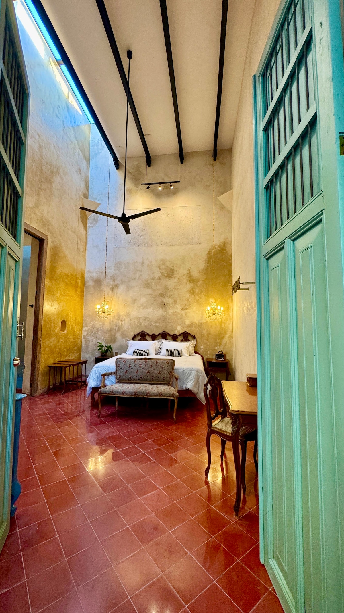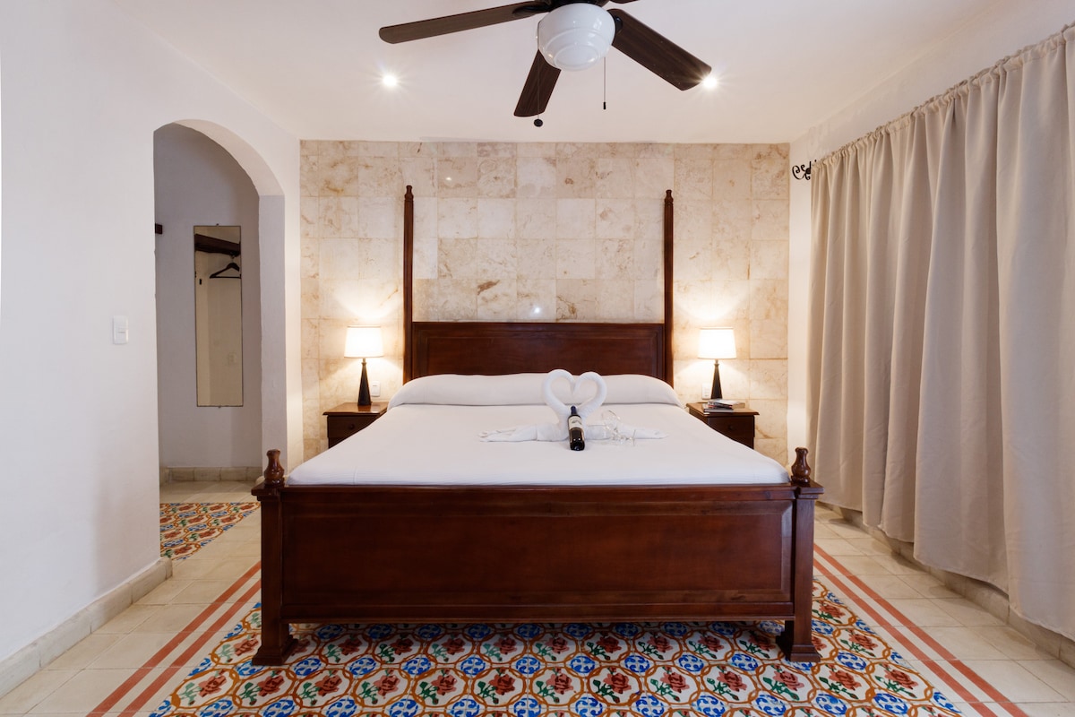 Descubre la esencia de Mérida en una casona antigua restaurada con muros de piedra y estilo boho-natural. Relájate en tu jardín privado con piscina exclusiva, disfruta de una cama matrimonial con ropa de calidad, aire acondicionado, Smart TV y Wi-Fi. Ubicado en la emblemática Calle 60, cerca del Paseo de Montejo y cafés locales. Ideal para parejas y viajeros que buscan autenticidad, historia y confort moderno.