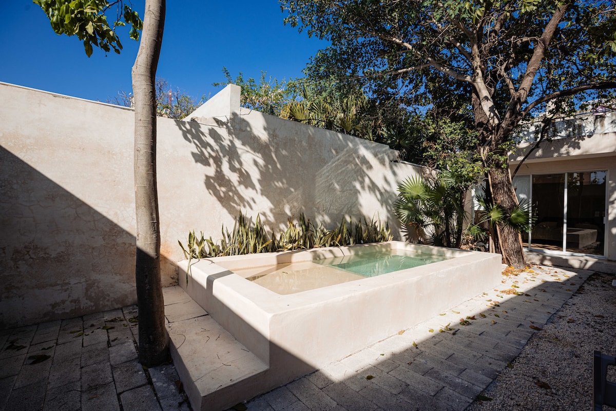 Casa Máak An is a beautiful, quiet and cozy little house. Located just a few steps from Parque de la Alemán, one of the most emblematic parks in the city, 6 min by car from the main avenue Paseo de Montejo. 10 min by car to downtown. Casa Máak An is a unique option with an with a fantastic architecture and decoration that invites the senses to stop and enjoy. Make Casa Máak An your base to explore Yucatán and return to a perfect Chucum pool to end your day with the most relaxing way.