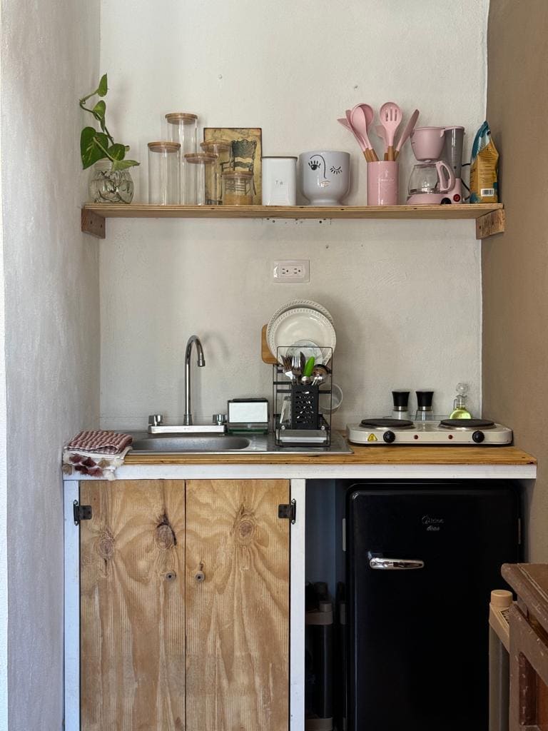 Akbal con su doble altura combina diseño moderno con lo más importante en la ciudad: frescura y funcionalidad. Equipado con lo necesario para que puedas hospedarte cómodamente. 💻 Perfecto para: Estancias largas Trabajo remoto Viajes en pareja o individuales. Se ubica estrategicamente a solo 8 minutos en auto de Paseo de Montejo y muy cerca del parque La Plancha y estación del IE-TRAM, con fácil acceso a puntos clave de la ciudad. 🚪 Llegada sencilla para que puedas instalarte fácilmente.