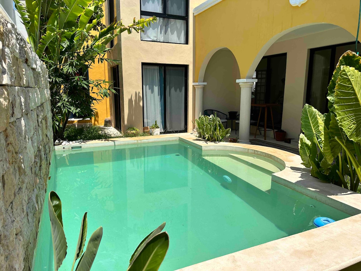 The adjacent construction is complete! We offer our guests FREE PRIVATE PARKING!! It has everything you need: - Fast and uninterrupted Wi-Fi - Air conditioning in all areas - Private pool WALKING DISTANCES 1 minute from Santa Lucía Park 9 minutes from Plaza Grande 6 minutes from the Gastronomic Corridor 15 minutes from La Plancha Park 7 minutes from Paseo de Montejo