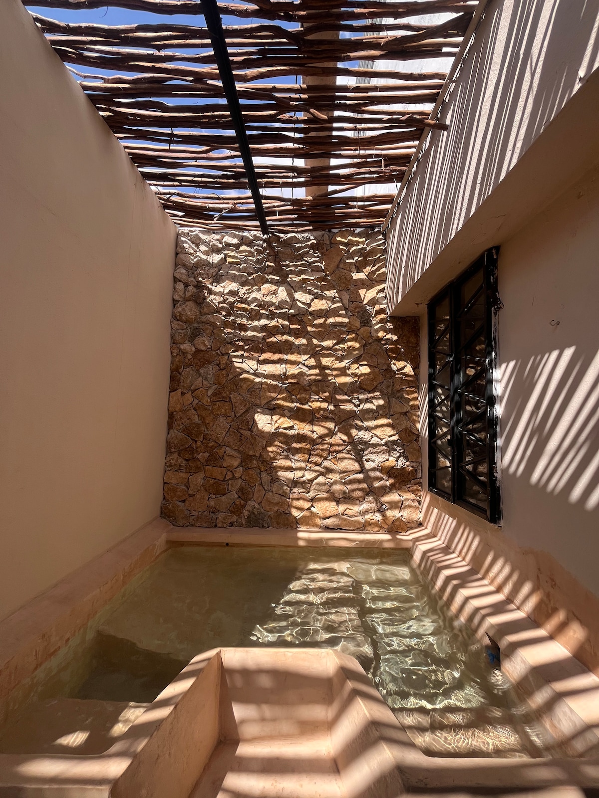 "Beautiful Private Suite filled with natural light. The clarity & simplicity of the space will make you feel peaceful, fresh & relaxed. The floor plan is an open concept and perfect for: relaxing, lounging, napping, with the view of the pool. A very convenient location right next door from the Parque La Plancha, 47th Gastronomic Corridor and walking distance to the Paseo de Montejo with the best coffee shops, restaurants, markets and other trendy places close to our beautiful Centro Histórico"