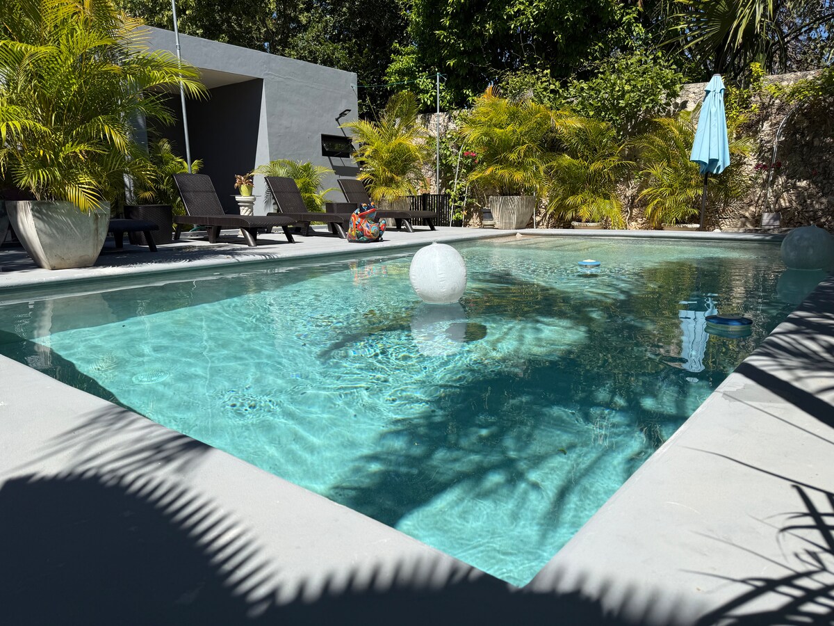 Small and cozy villa with contemporary Mexican design, with everything you need for long and short stays, ideal for resting or home office. Equipped with a full kitchen, living room, bathroom with hot water, air conditioning, fans, high-speed Wi-Fi, private patio with trees, swimming pool and shared laundry within the facilities. Excellent location, a few steps from Paseo Montejo near Walmart, banks, bars and restaurants.