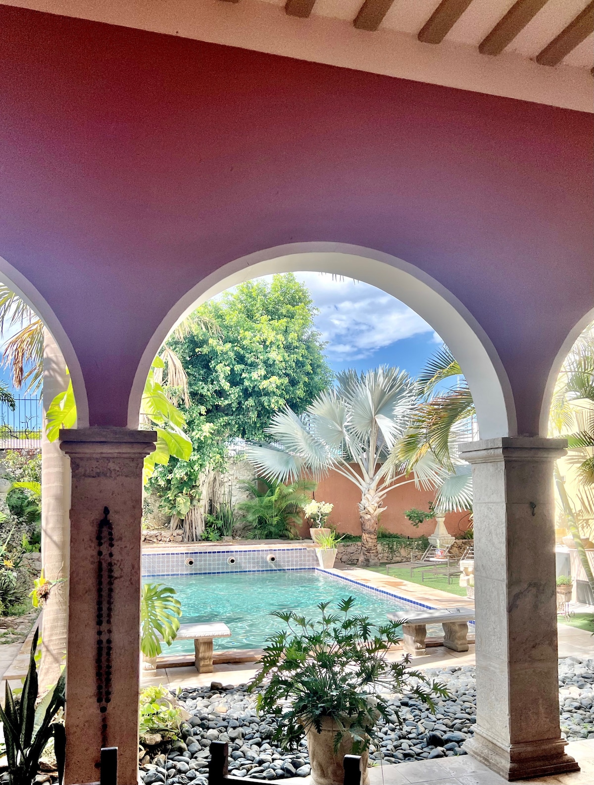Lovely private home in the center of Merida. Three blocks from the Parque Santiago on one of the quietest streets in the City. 3 bedrooms with A/C and private baths and a full size pool for cooling down. 50 inch Netflix/Roku Tv Early arrivals and late departures will be accommodated when possible NOTE: STAYS LONGER THAN 3 WEEKS DO NOT INCLUDE THE COST OF ELECTRICITY NOTE: WHEN ENTERING THE NUMBER OF GUESTS PLEASE DO NOT INCLUDE KIDS UNDER 12 OR THE SITE WILL CHARGE THE ADDITIONAL GUESTS FEES