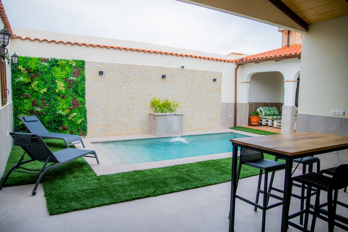 配备按摩浴缸和游泳池的套房。毗邻罗马剧院