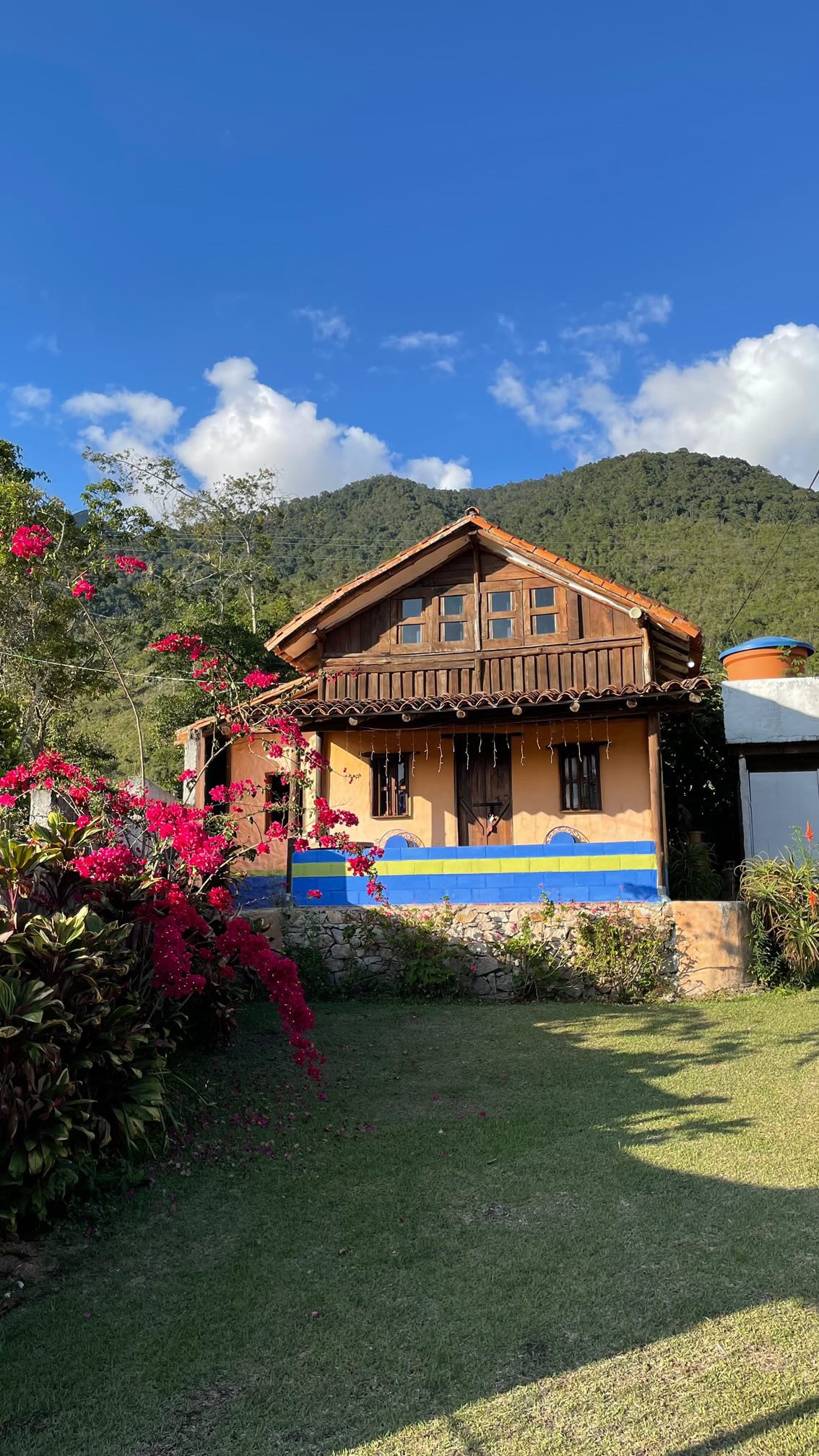 House surrounded by trees in a quiet area, with the sound of the river and birds singing. Enjoy beautiful sunsets and a cozy atmosphere filled with natural light. It features air conditioning, a fully equipped kitchen, a washer, a pizza oven, and an outdoor space ideal for relaxing. Located in a gated community with parking, close to the cable car, downtown, restaurants, and the Valley. Perfect for unwinding and enjoying your stay.