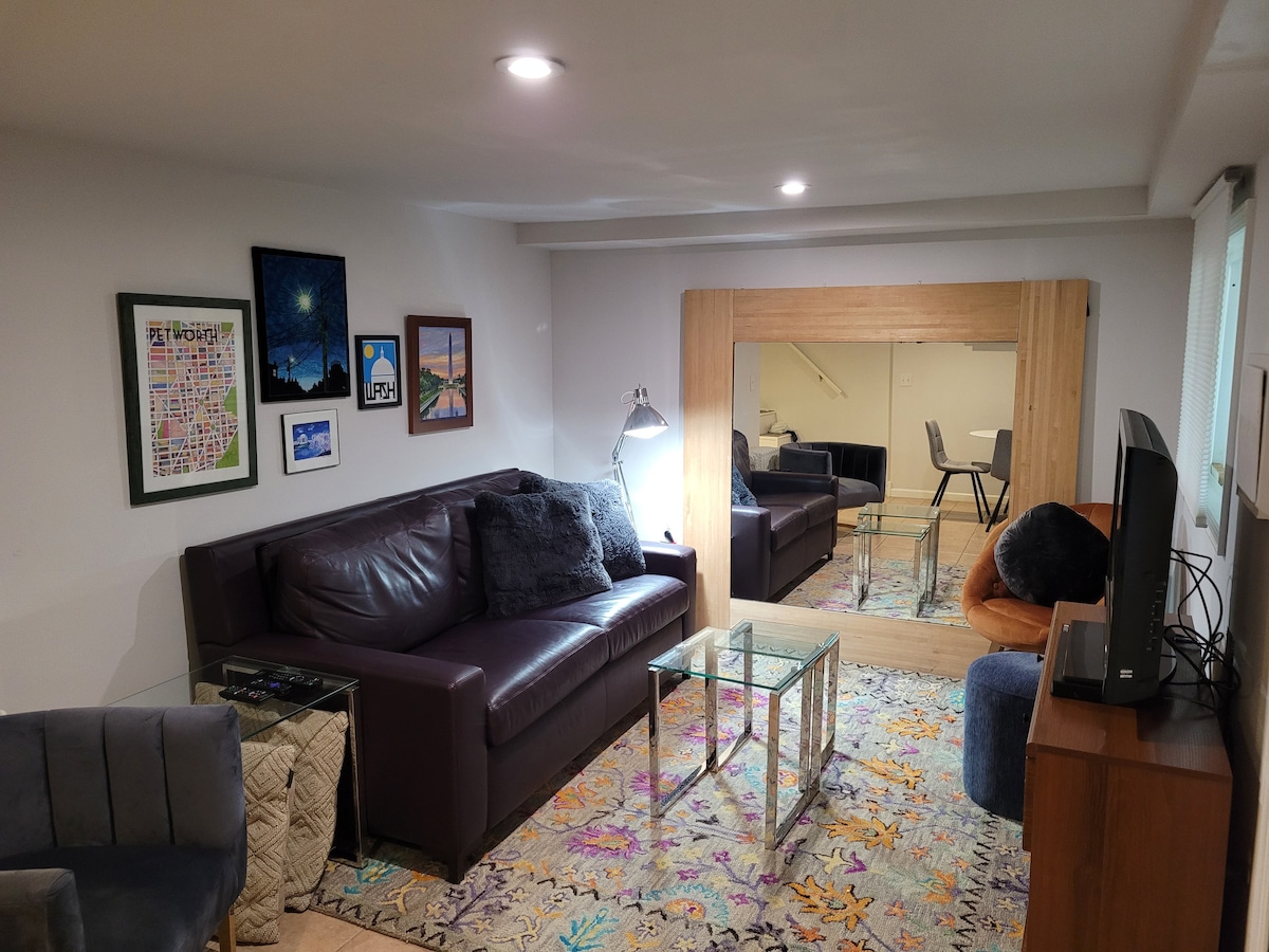 Modern 1 bed 1 bath English Basement with private entrance in Adams Morgan. Short walk to Mt Pleasant, Columbia Heights, Woodley Park, Dupont, and the zoo. Full kitchen with induction range, dishwasher, and fridge. Queen size bed and natural light in bedroom. Twin size pullout sofa bed and full length sofa in living room can provide comfortable sleeping for up to an additional 2 guests. WiFi. 10 min walk to Columbia Heights and 20 min to Woodley Park metro stations. Parking not provided.