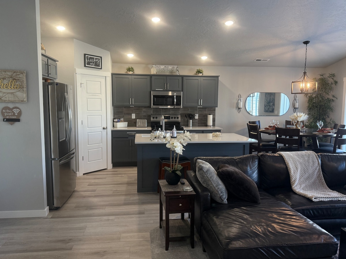 This home has everything you need for an enjoyable stay in a desirable area of Meridian, Idaho. Log-in to your streaming services and enjoy movies on our 65" smart tv, cook a meal in our kitchen that is stocked with basic kitchen essentials, get work done using high speed internet and wake up feeling refreshed after a great night's sleep on comfortable beds. We are all about cleanliness + comfort and are confident that you will have a great stay in this home.