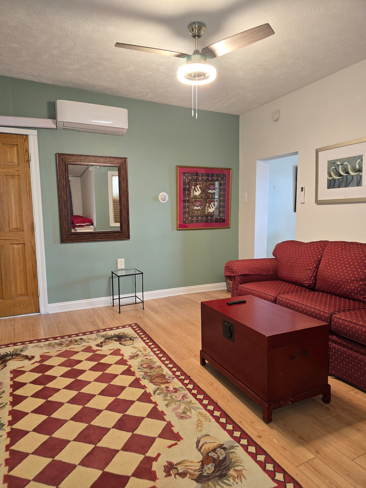 On the brick road, this quaint downtown apartment is full of charm. 600 ft of renovated space will accommodate 4 for short term rentals or 2 for rentals of more than 1 week. Conveniently located to help you enjoy hiking at Ionia State Park, kayaking on the Grand River, biking on the Fred Meijer Rail Trail. Centrally located for antique shopping in Ionia, Lowell, Lake Odessa and Portland. You might also enjoy a walking tour of beautiful, historic Ionia.