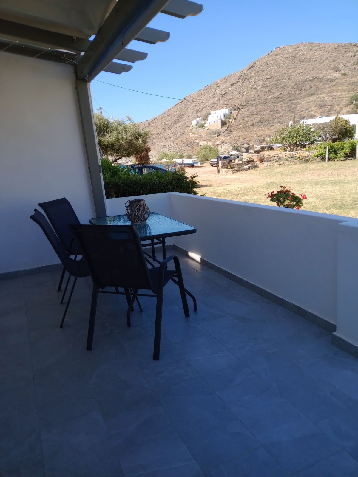 studio 25 τ.μ. με υπέροχη θέα στη θάλασσα, 5 μ. από την παραλία, φιλοξενεί έως 3 άτομα. Βρίσκεται στο Καλό Λιβάδι έναν οικισμό με 30 σπιτάκια και ενοικιαζόμενα δωμάτια, χωρίς καταστήματα και εστιατόρια. Ιδανικό για όσους επιζητούν να απολαύσουν τον ήλιο και τη θάλασσα, την ηρεμία και την ξεκούραση. Για να φτάσετε από το λιμάνι θα πρέπει απαραίτητα να διαθέτετε μέσο μετακίνησης και να οδηγήσετε για 25 λεπτά. Απέχει 20 λεπτά από όλα τα κεντρικά σημεία του νησιού