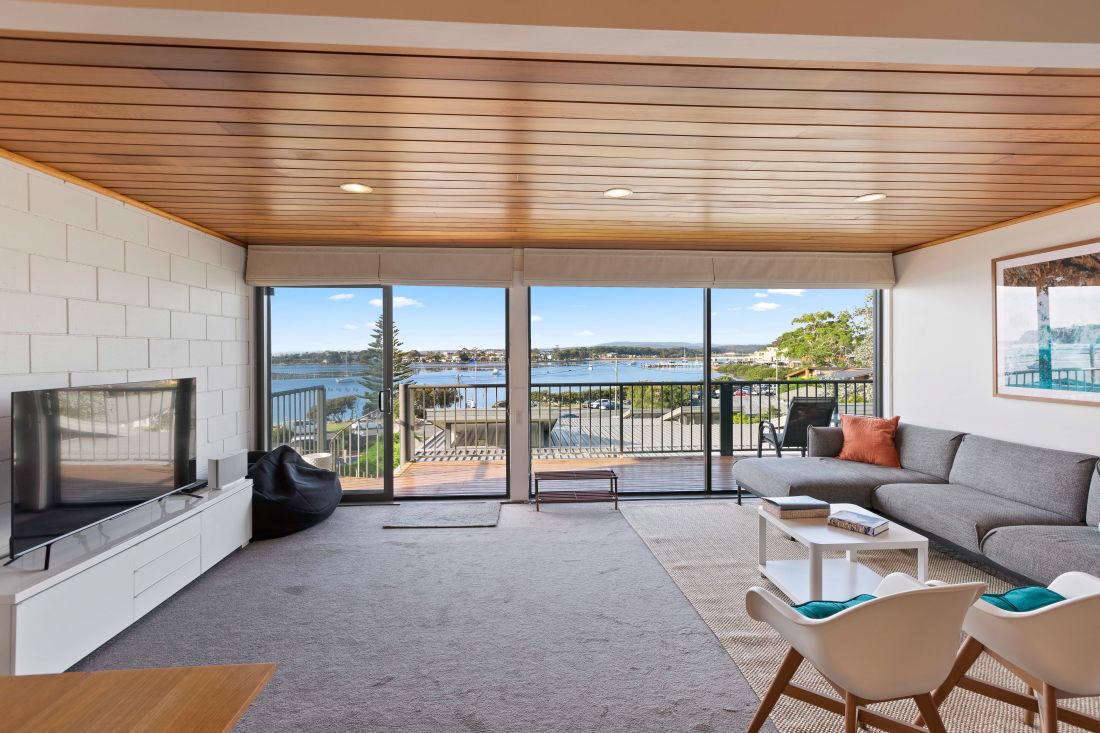 Enjoy a coffee while you cook your own breakfast looking over amazing views of both lakes and the ocean. Wonderful natural light in the living areas. Go for a dip in the pool just metres from the front door. Take a short stroll down the hill to one of the clubs for dinner and take the courtesy bus back up the hill home. Has a washing machine, Large Smart TV with Netflix and also a private car space.