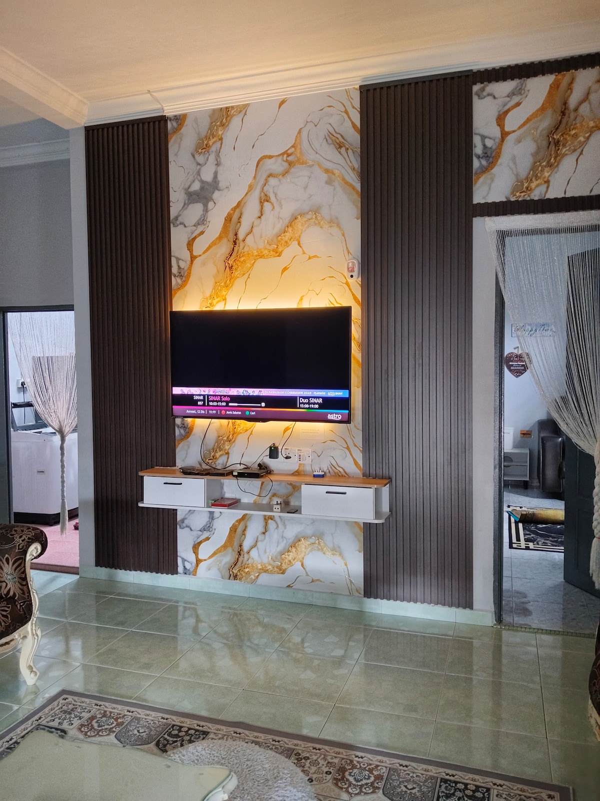 The Dan Garden -瑭苑 A newly furnished 6000+ sq. feet bungalow in the middle of Malacca. 15-20min from here to Jonker Gallery . In our location,guest won’t get sounds pollution form the car and traffic jam during peak season .Premium toilet and smart tv in every single room,Guests can relax in our garden and landscaping and enjoying the music that comes from the ceiling speakers in living room.We guarantee you will love this place because of the flamboyant ambiance,comfy beds,and of course the outdoors space. Room 1 & Room 4 -super single bed x 2 -queen size bed x 1 -bathroom (shampoo & towel included) -smart tv (strong connection) -hair dryer -cloth hanger -2.0 hp air conditioner Room 2 & Room 3 -king size bed x 1 -bathroom(shampoo & towel included) -smart tv (strong connection) -hair dryer -cloth hanger -1.5 hp air conditioner TV Room -55”Smart Tv (strong connection) -quality speakers -sofa beds Kitchen -plates&cups&spoon&fork (for 12 guests use) -cooking tools -coway water machine -Bar tender -fridge -washing machine Living Room -dining table -2.5 & 3.0 hp cassettes air conditioner -majong table Others: Car porch (for 3cars) Garden view courtyard x 2 modems x 2 Prohibition -No smoking indoor -No pets allowed -No outside activities after 11pm