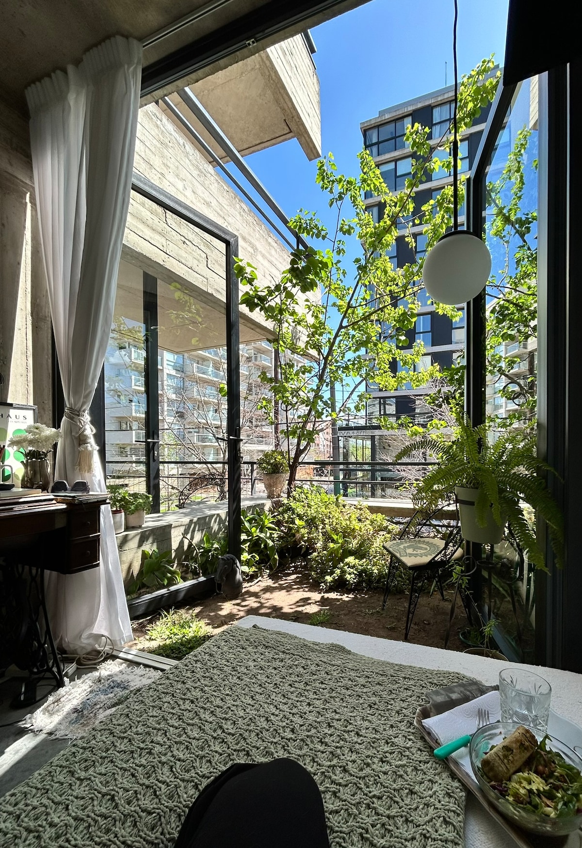 Departamento en Edificio galardonado internacionalmente por su arquitectura. Ubicado en un primer piso, en esquina, increíblemente luminoso, flexible y cómodo. Completamente amoblado, cuenta con todo lo que necesitas para disfrutar de esta zona de Buenos Aires. Lo que lo hace único es su jardín y terraza llena de vegetación. Estación de tren a CABA a 3 cuadras junto con variadas líneas de colectivos. Plaza central, bares, locales comerciales a 1/2 cuadra. El wifi funciona perfecto para trabajar.