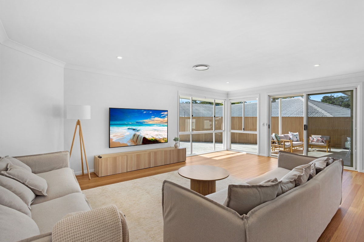 Located in vibrant Palm Beach, the Jacana Beach House occupies the perfect position on the sandy canals looking out to crystal blues, while being central to bustling Palm Beach and Burleigh Heads cafés, restaurants, and beaches. The home features 3 bedrooms, 2 bathrooms (1 on-suite, 1 sharing), an open-plan living space with 2 dining tables, a large sectional sofa, 2 outdoor covered decks plus an uncovered sunbathing deck complete with a pool overlooking the water.