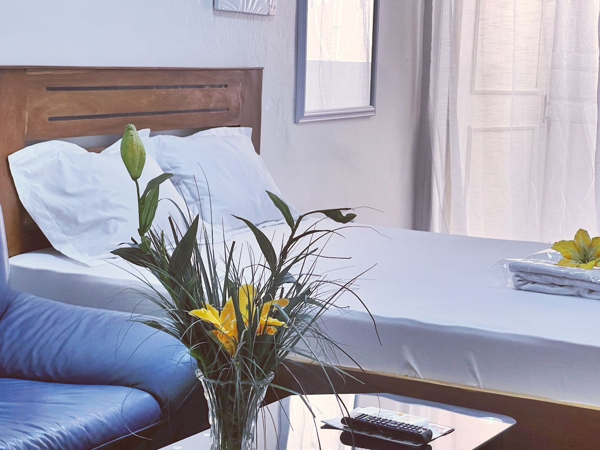 Profitez d'un studio élégant et central dans un hotpost de Dakar. Le studio se trouve dans un de nos immeubles récents a Ouakam Cite Avion, quartier central de Dakar à proximité du Monument de la Renaissance Africaine. Base idéale pour visiter les sites touristiques : Gorée, Lac Rose. L'électricité est exclue du prix. Vous devrez charger séparément. Le montant dépend de votre consommation, mais en moyenne il est estimé entre 1500 et 3.000 fcfa (1.5 a 5euros) par jour. Merci.