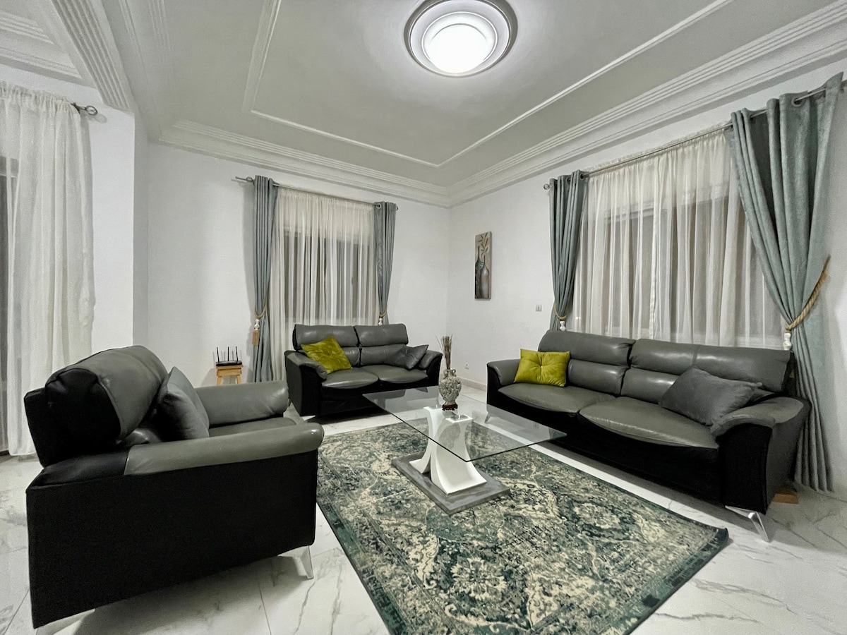 Détendez-vous dans ce logement calme et élégant avec PISCINE privée. Le confort au centre de Dakar pour vacanciers ou missionnaires, à 10 mn à pied de la plage de Mermoz Salon, cuisine équipée et dînatoire, trois chambres avec grand lits, Bien sécurisé, bien climatisé, eau chaude. Style européen avec le charme sénégalais. Pas loin du Auchan, KFC, décathlon de Mermoz, taxi facile à avoir. Mermoz: quartier calme idéal pour se déplacer dans Dakar Votre consommation électrique est à votre charge