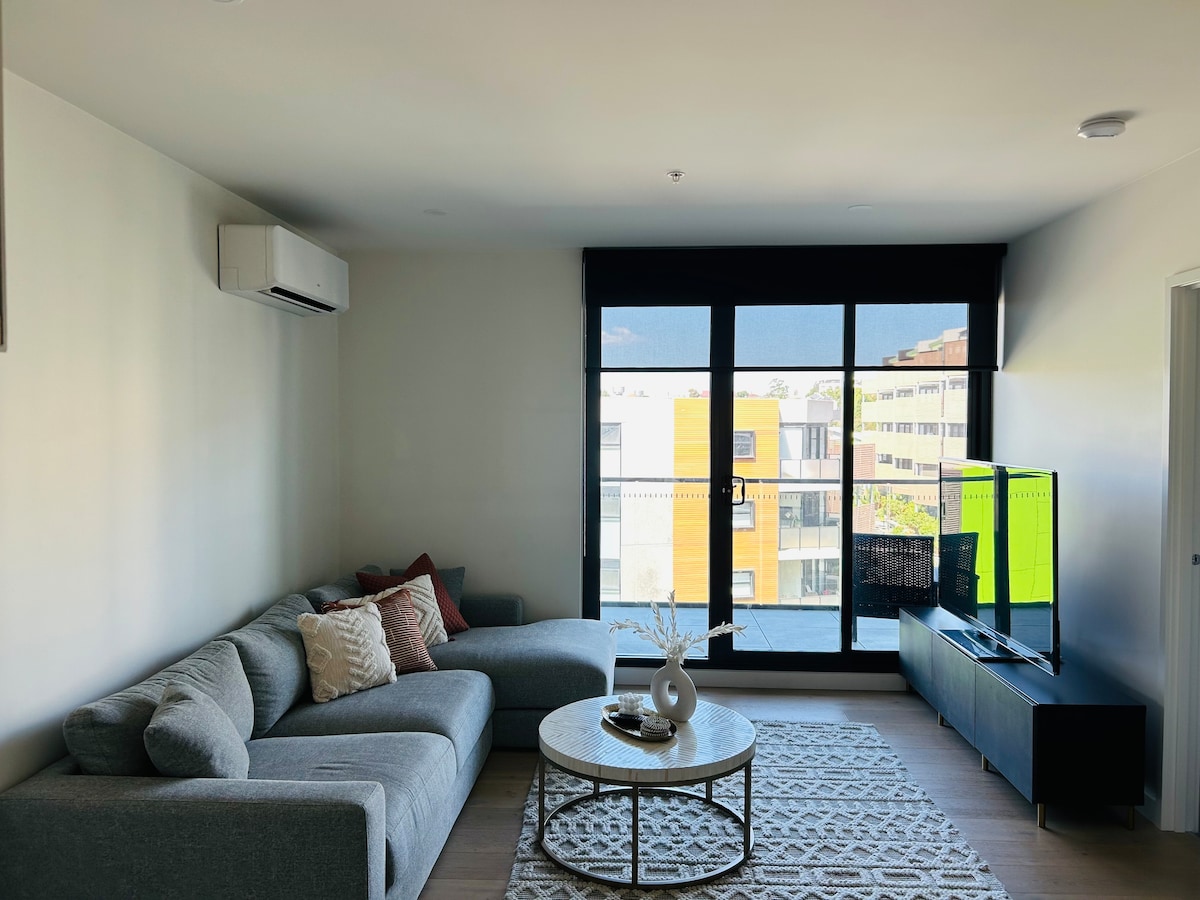 Welcome to your cosy modern stay in Brunswick West! This stylish 1-bedroom, 1-bathroom apartment features sleek amenities, a private balcony with Melbourne city views, and free secure underground parking—perfect for guests with a car. Location Highlights: • Great cafes nearby • Gym access included • 20-minute drive to Melbourne CBD • Easy access to trams and buses Ideal for solo travellers, couples, or business guests seeking a peaceful retreat close to the heart of Melbourne.