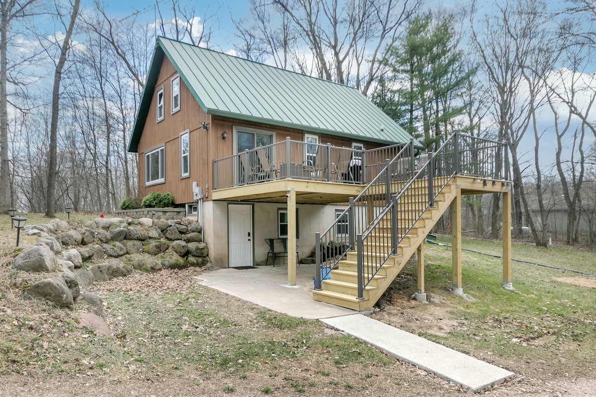 Nestled deep in the Baraboo Bluffs on a dead-end country road. A true cabin-in-the-woods feel without sacrificing space or amenities. Perfect for family getaways, outdoor enthusiasts, or anyone craving a peaceful recharge. Whether you’re sipping coffee or drinks on the deck while watching wildlife, hiking the bluffs, skiing nearby or visiting the Dells, there’s no shortage of things to do, or not do! Minutes from Devil’s Lake, Devil’s Head Resort, Ice Age Trails & 25 minutes to Wisconsin Dells