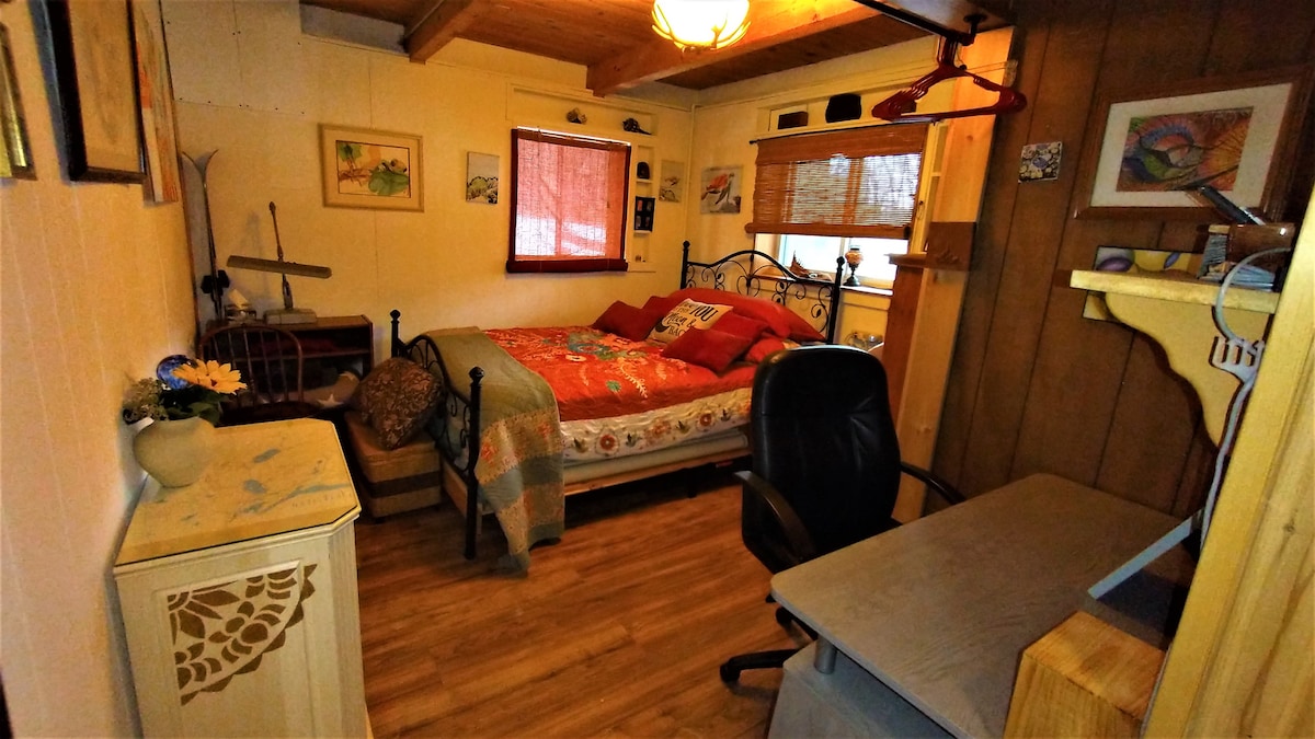 The Cottage is attached to our 1880 New Englander. We live right next door to the Cottage with our two pups. You will have the entire guest suite to yourself. Enter through the door off of the deck. The kitchen and living room are on the first floor and the bathroom is located between the first and second floors. One bedroom has a full-size mattress and the other has two twin beds.