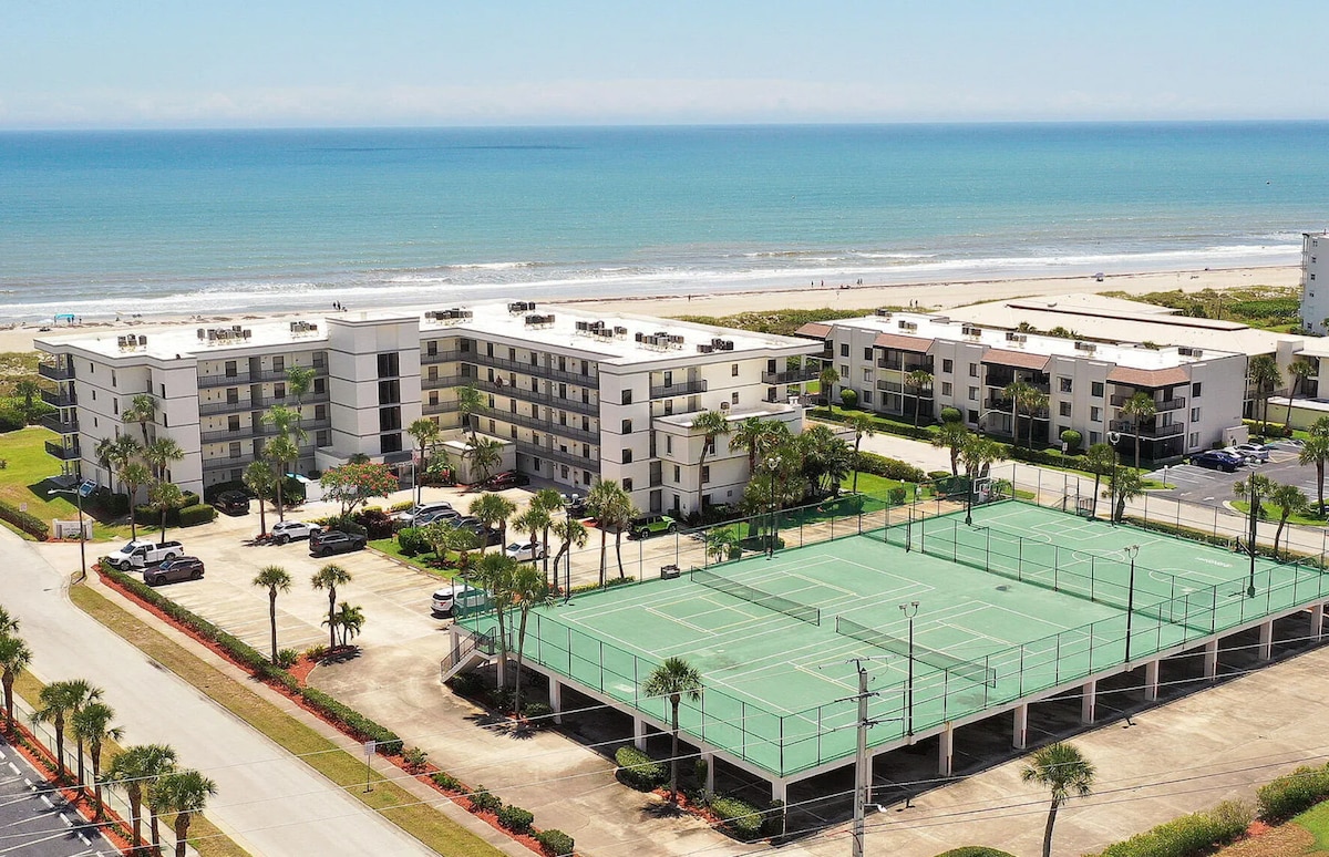 Savor Panoramic Ocean Views at this spacious Beachfront condo. * 2 bedrooms with King beds * Ocean Views from living room and master * Extra large Oceanfront balcony * Direct private Beach access * Swimming pool * 2 full bathrooms * 3 Smart TVs with cable * Free WiFi * In-unit washer and dryer * Queen-sized sleeper sofa * Free underground parking space * Downtown Cocoa Beach location * Short walk to restaurants and shops * Complimentary toiletries, coffee and tea
