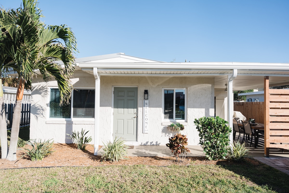 ☀️ Spring is Here! 3 Min walk to the Beach!!! Welcome to Town Center Cottages — your cozy, walk-to-everything beach retreat in the heart of Cocoa Beach. Whether you're watching a rocket launch from the sand, playing in the surf with our free beach gear, or grilling dinner after a day at Kennedy Space Center, this is the place where your family memories are made What you'll Love ❤️KING BED! ❤️Beach chairs, wagon, umbrella, cooler ❤️Free WiFi & Parking ❤️Fenced Yard!