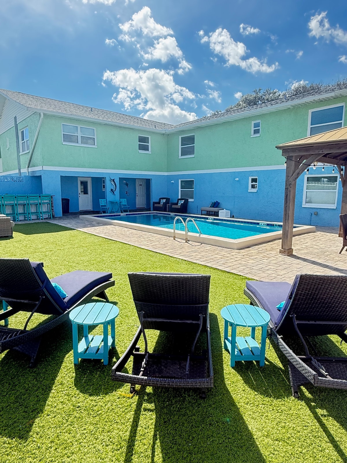This gorgeous Mediterranean Villa is just half mile from the beach! This 5-bedroom 3.5 bath house features 3600 square feet of luxury living space. Perfect for a beachside vacation in the Sunny Florida. A short drive from Kennedy Space Center & Disney. Smart TVs in every room, Ping pong table, Elliptical and exercise equipment in the garage. There is Sauna with blue red light therapy. Guests have access to community pool. For the back court yard there are nets and rackets to play badminton.