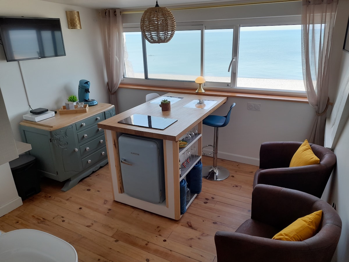 ATTENTION ÉCHAFAUDAGE PREVU DU 25/05 au 12/06/2026 - BAISSE DU TARIF DURANT CETTE PERIODE WIFI disponible - Uniquement pour 2 adultes Arrivée autonome - Tout est prêt à votre arrivée, le lit est fait, le linge de toilette est également fourni. Stationnement gratuit à proximité. Véritable nid douillet pour 2, est idéalement situé à quelques pas de la plage, offrant une vue imprenable sur la mer.