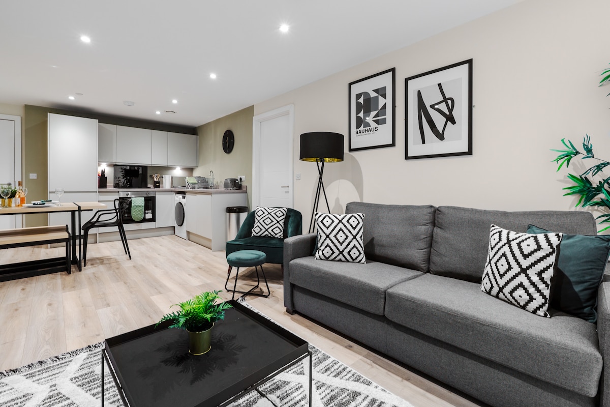 The apartment is clean and comfortable. Sleeping up to 4 guests.Pets are also welcome. There is a large park at the rear of the property for dog walking, Please pick up after you pet. We are well situated within walking distance of local shops, cafe takeaways and a short drive to a variety of small restaurants. Easy access to and from the motorways. Key safe service. We operate a Trust box food store. Free parking on the road outside.Or private parking at rear.Great discount for longer stay