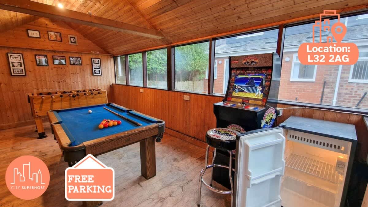 Tucked behind a quiet family home in Ainsdale, Finsters Retreat is a fully refurbished 2-bed bungalow with private entrance, self check-in, and free parking. Perfect for families, golf trips, or a beach break. Sleeps 6 – 1 double room + 1 king-size + bunk bed Private hot tub – Yours to enjoy throughout the stay Games room – Private use between 8am–8pm Garden & patio – Ideal for relaxing outdoors Bouncy castle – Available with advance booking & extra charge