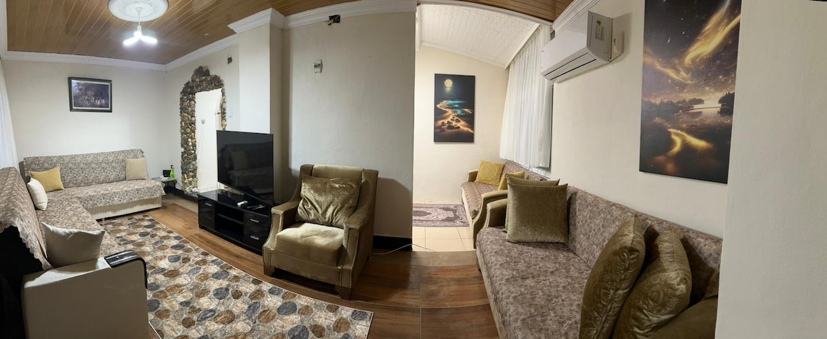Bu huzurlu konaklama yerinde ailece dinlenebilirsiniz. market lokanta herşey çok yakın evde 6 adet çekyat 1 çift kişilik yatak kendiniz e ait mutfak WC banyo kendiniz e ait bahçe masası mangal bir evde ihtiyaç duyulan her türlü tencere tava mevcut