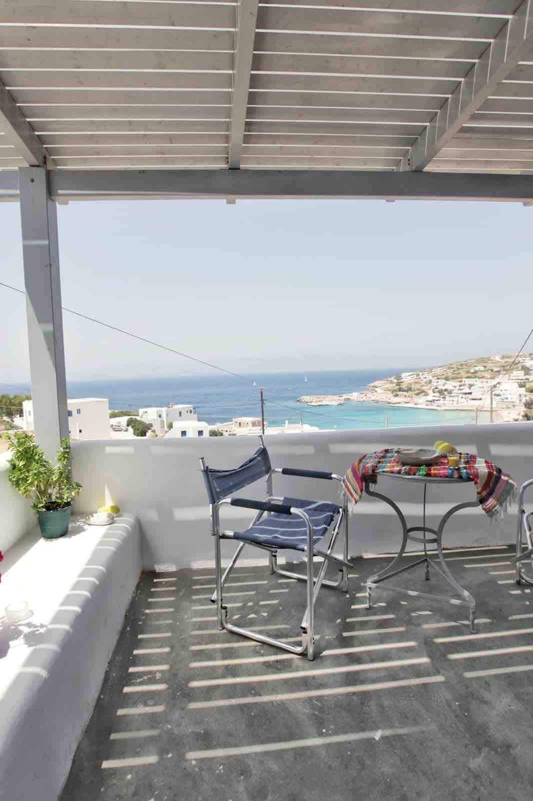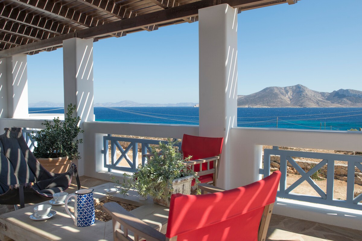 Apartments for rent at the port of Donousa fully equipped with kitchenette including fridge, oven, cooking utensils, AC, TV, WC with shower, washing machine and unobstructed view of the South Aegean Sea. Ideal rental for families or couples seeking comfort and easy while on holiday. The apartments are ideally situated, a one-minute walk to Stavros Beach and less than 50 meters from the port where the bus and traditional caique transports people to the various beaches around Donousa.